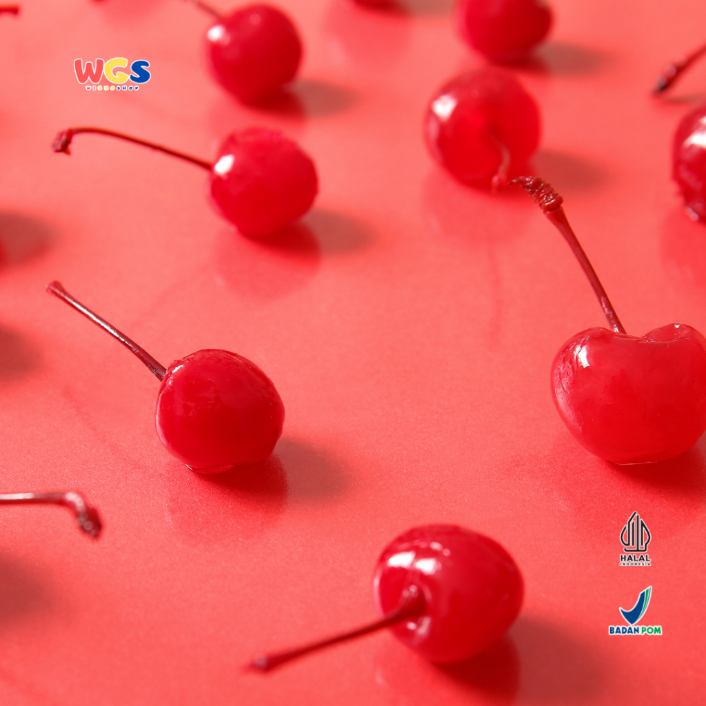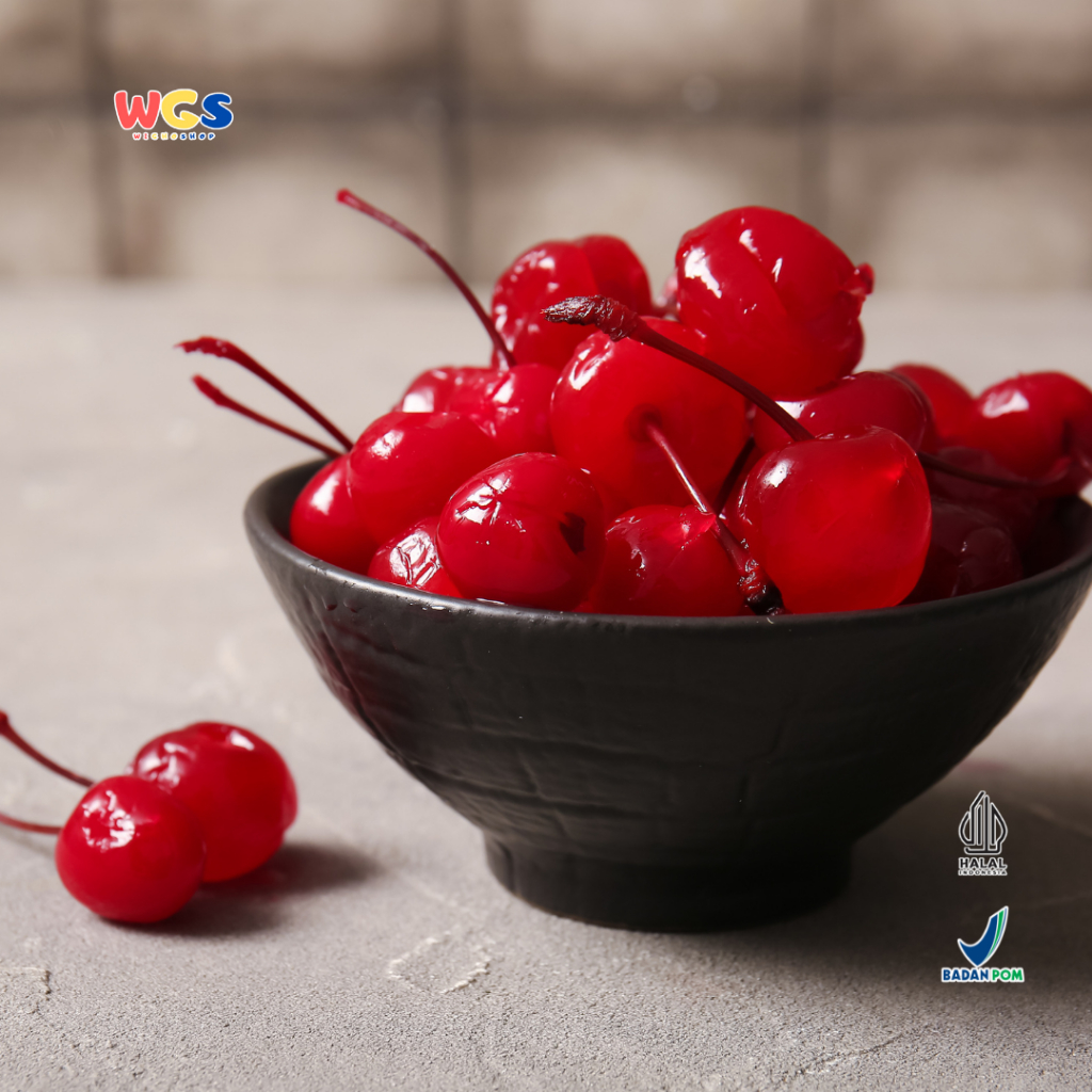 WILMOND Maraschino Cherries with Stem 2kg – Ceri Merah Batang untuk Topping Minuman & Dessert