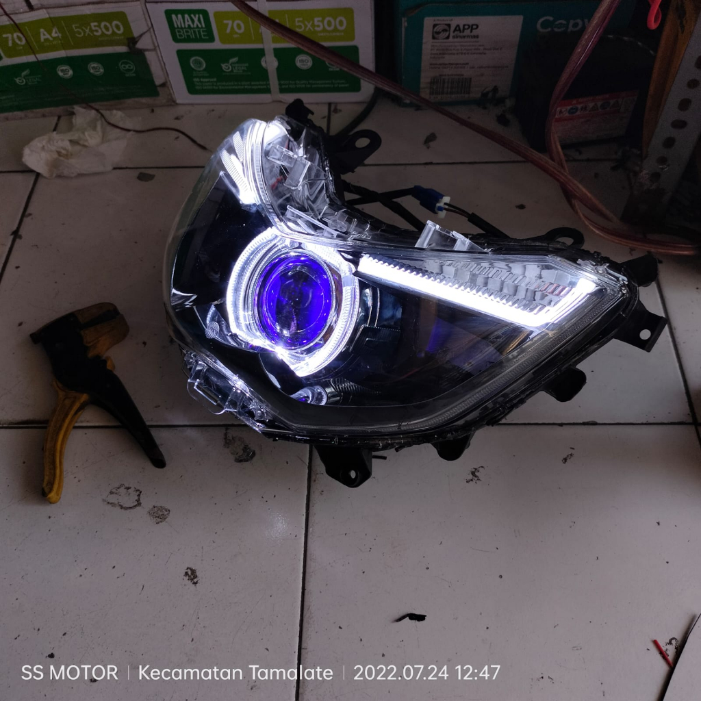 HEADLAMP LAMPU DEPAN CUSTOM PROJIE BILED AES TURBO SE NON LASER UPGRADE / LASER / ALL WEATHER 3 WARNA dan TURBO TIR YAMAHA NMAX OLD / LAMA