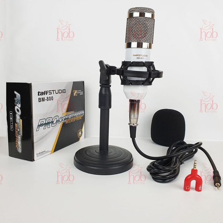 TaffSTUDIO BM800 mikropon BM 800 Microphone + Stand Mic Meja Podium