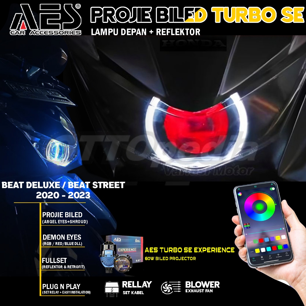 Headlamp Projie BILED AES Turbo SE BEAT DELUXE / BEAT STREET 2020-2024 Lampu Depan Fullset