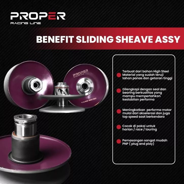 TERLARIS PROPER RACING LINE SLIDING SHEAVE ASSY YAMAHA MIO J GT 115 FINO 115 XRIDE 115 54P PULLY BELAKANG