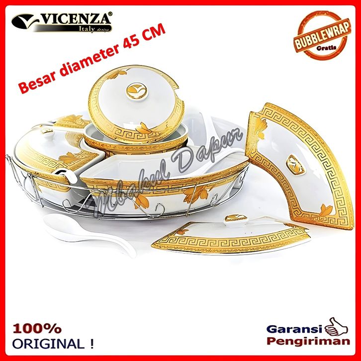 Wadah Saji Prasmanan Keramik Plus Pemutar Plastik 45 CM Motif Vicenza BBA 472