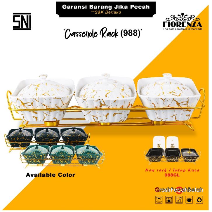Wadah Saji Penghangat Casserole Basi Set Motif Marble Fiorenza 988