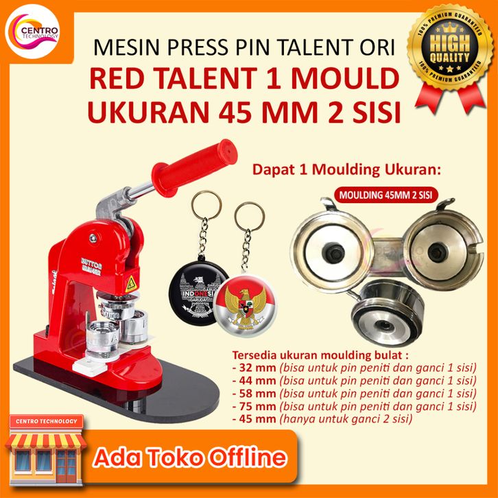 Mesin Press Pin Red Talent Asli / Original 1 Moulding Bisa Pilih Ukuran Moulding (Moulding 25mm, 32mm, 44mm, 58mm, 75mm)