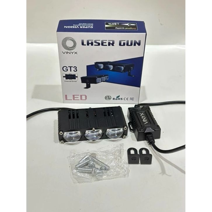 TERLARIS LAMPU TEMBAK VINYX GT2 SOROT 2 MATA LED LASER GUN SLIM GEPENG D3 STANG MOTOR GRILL MOBIL LASERGUN 30 WATT 2 WAR