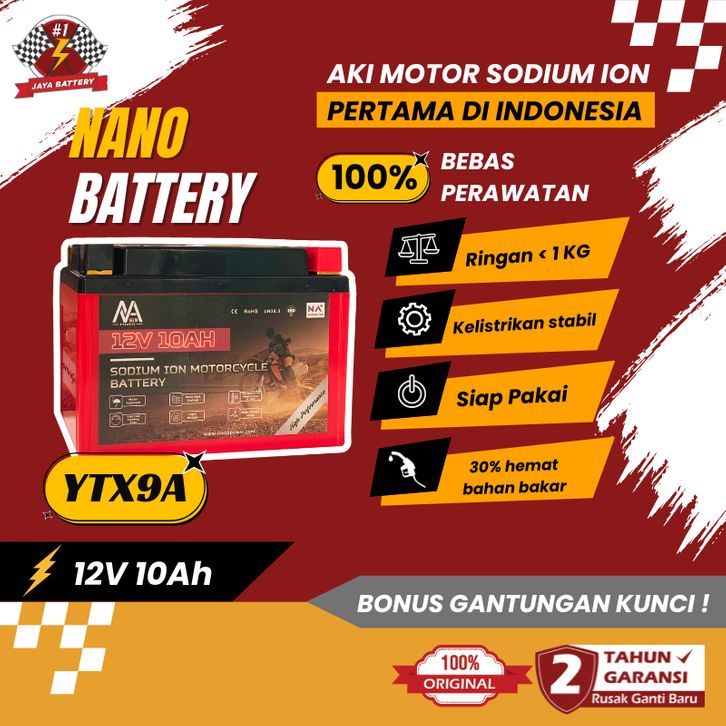 TERLARIS NANO BATTERY AKI MOTOR SODIUM ION 12.4V 10AH YTX9A / YTX9-BS AKI MOTOR NINJA 250 ZX-10R GUARANTEED