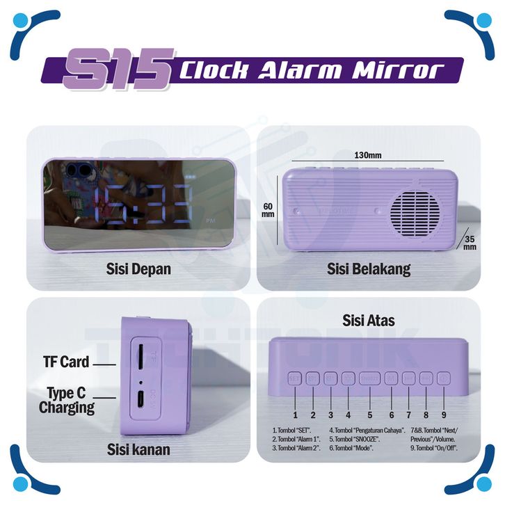 Speaker Wireless Bluetooth FM Radio Alarm Clock S15 SUARA JERNIH FULL BASS