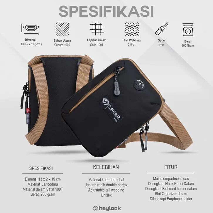 PROMO HEYLOOK Official - Tas Selempang Pria WELLS Sling Bag Cowok Tas Kecil Hp Tas Slempang Mini Waistbag Distro Sling P