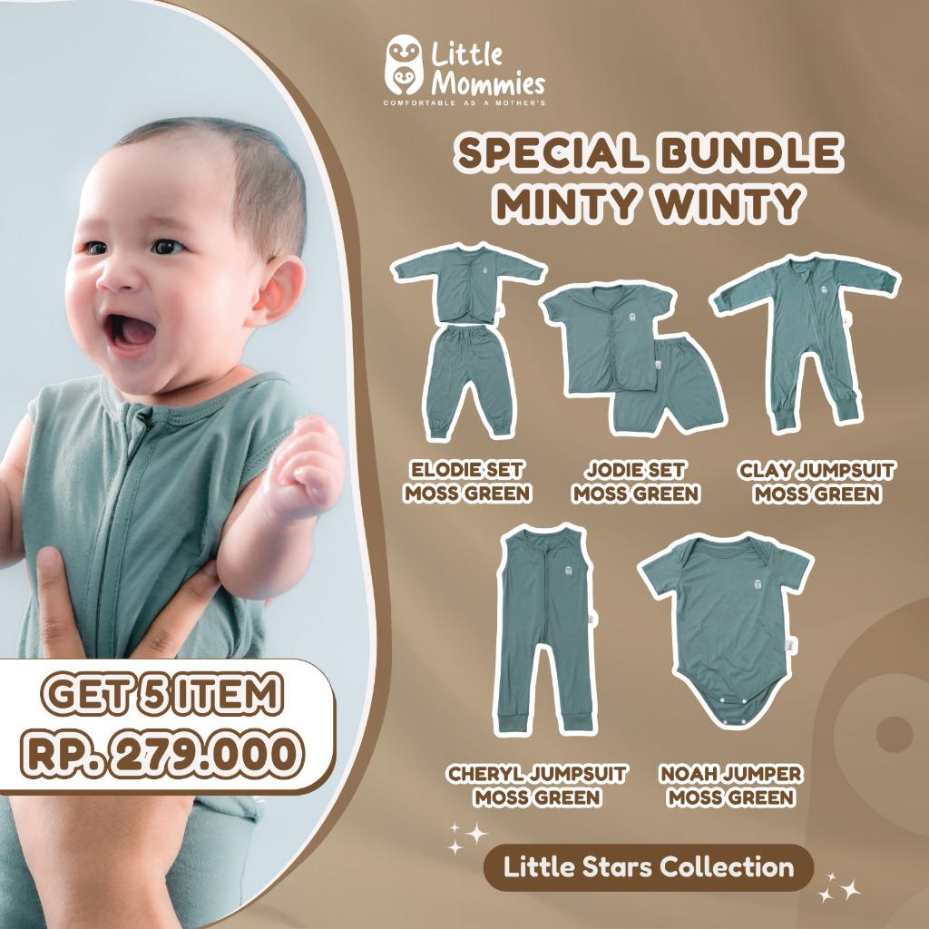 Little Mommies - Special Bundle Minty Winty - Sleepwear Newborn - Baju Tidur Bayi Comfortable 0-12 Month