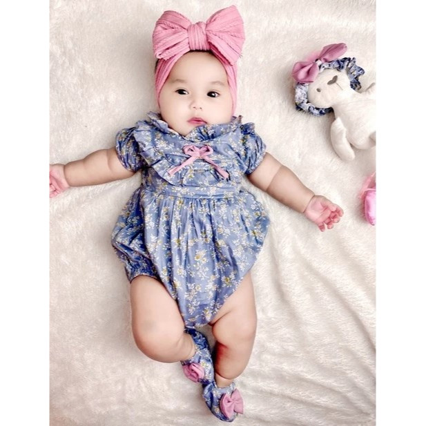 Baju Bayi French Jumper suit baby french satu set dengan ban dan sepatu