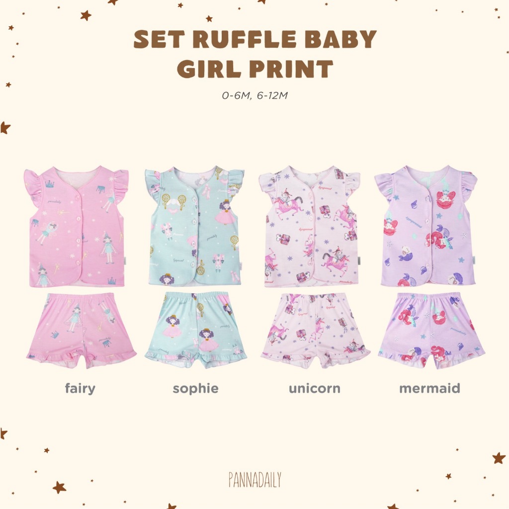 Panna Daily Ruffle Baby Girl Print A (Flower Series) - Panna Set Ruffle Baby Girl Print - Setelan Baju Bayi Perempuan