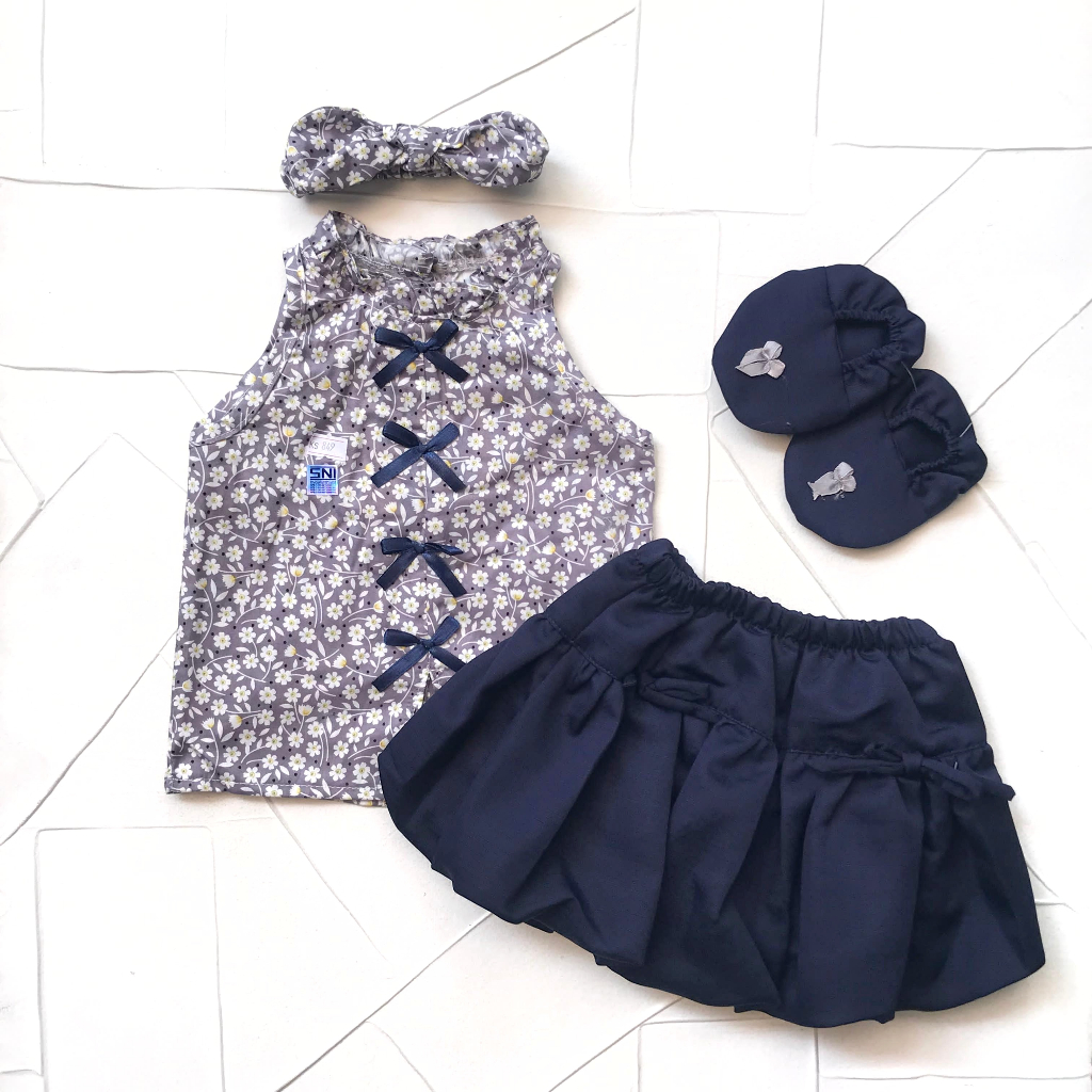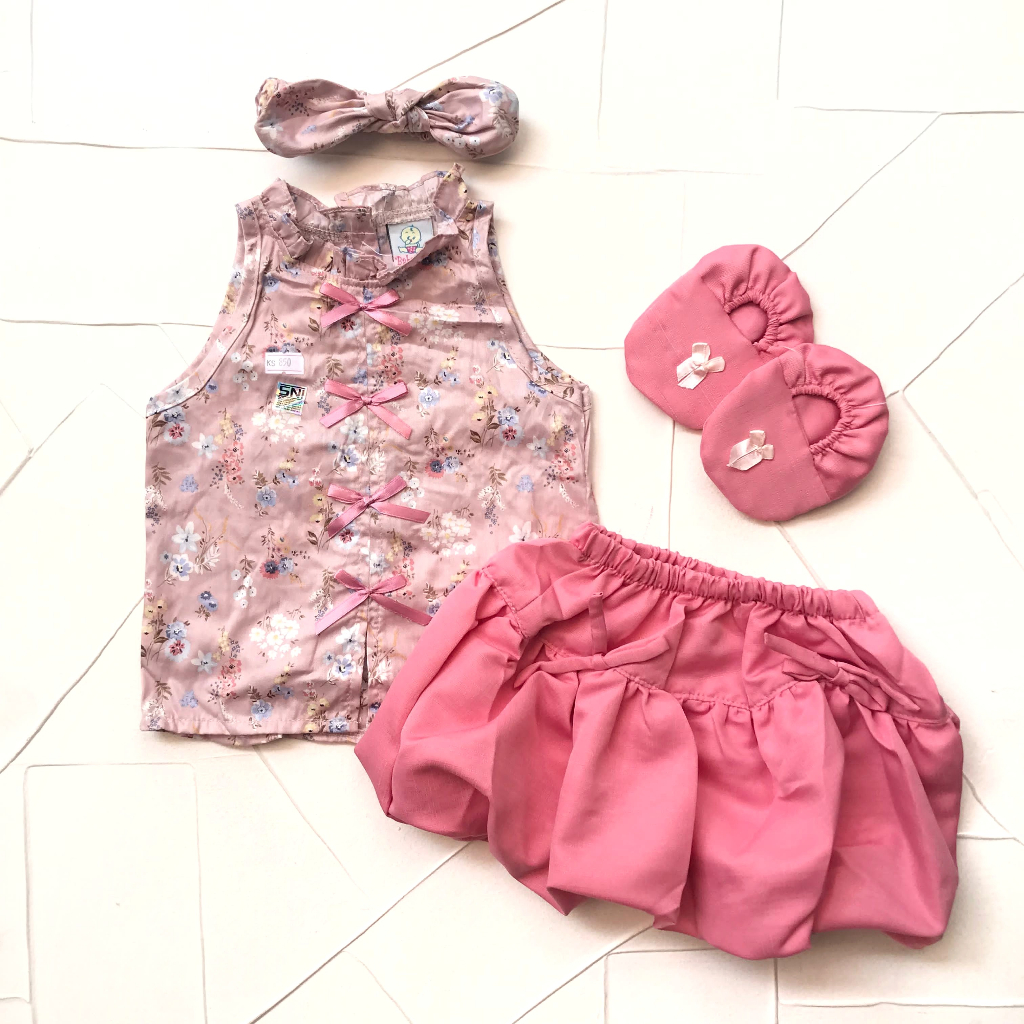 Baju setelan anak bayi perempuan 0-6 bulan kerah sanghai rok balon katun jepang bunga outfit bayi cewek lucu