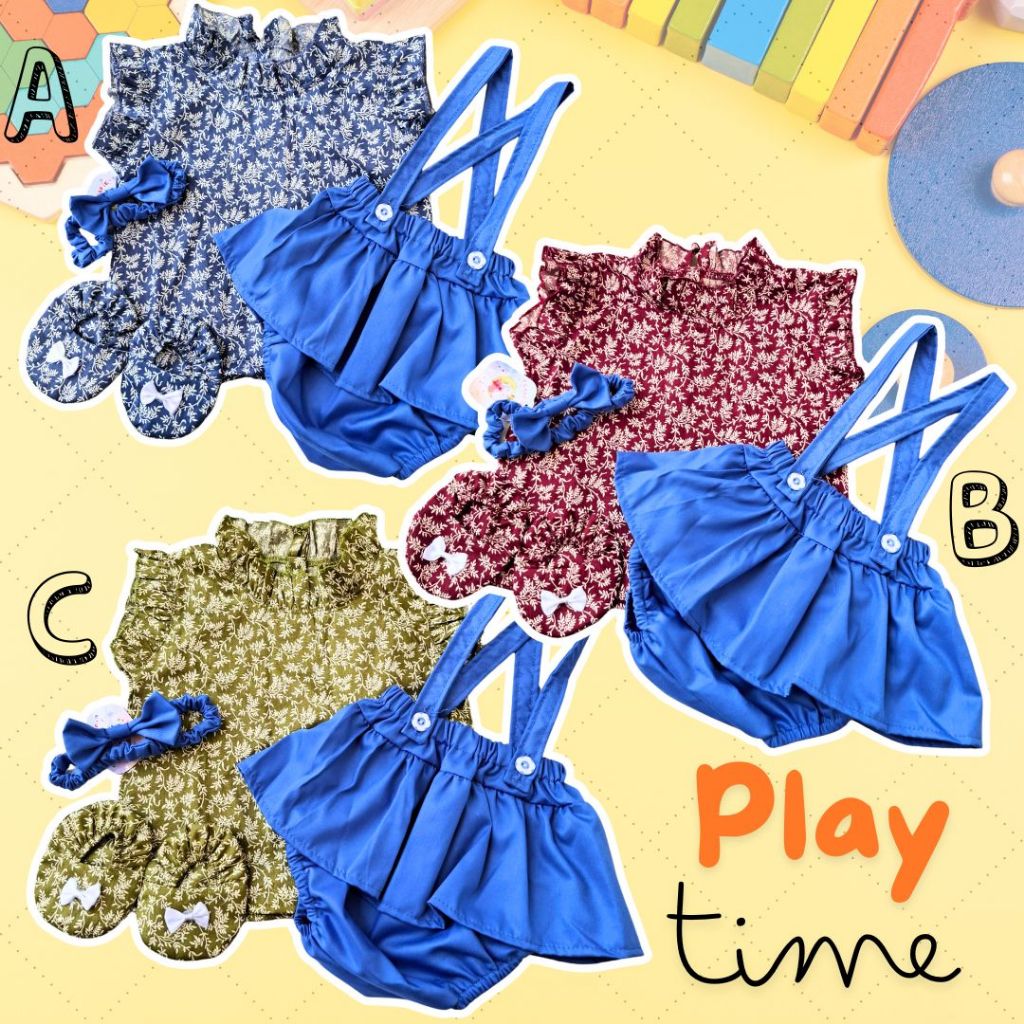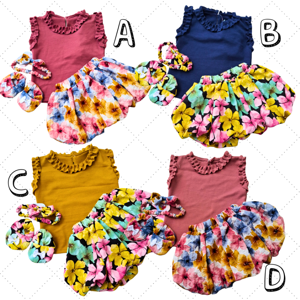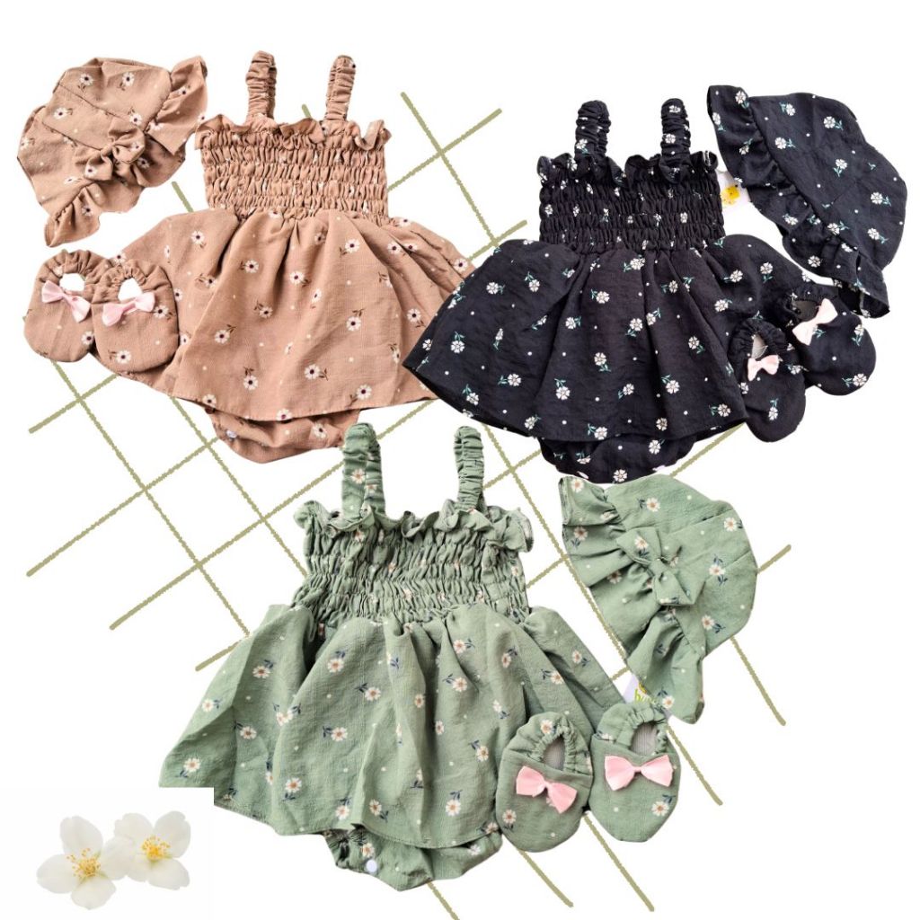 Setelan Baju Bayi Perempuan 0 6 Bulan Crincle Topi Bonet Noni Sepatu HH Mimihanashop
