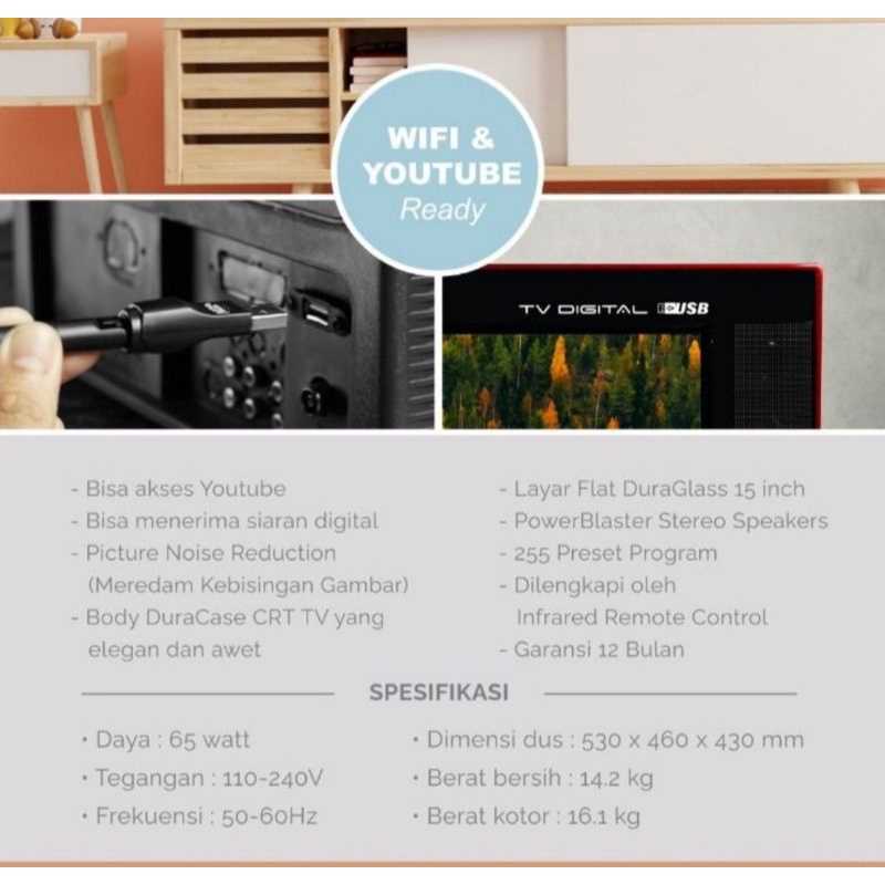 TV DIGITAL YOUTUBE DAN WIFI TV TABUNG CRT 17 INCH SIARAN DIGITAL SF-17L8 NAGOYA GARANSI RESMI