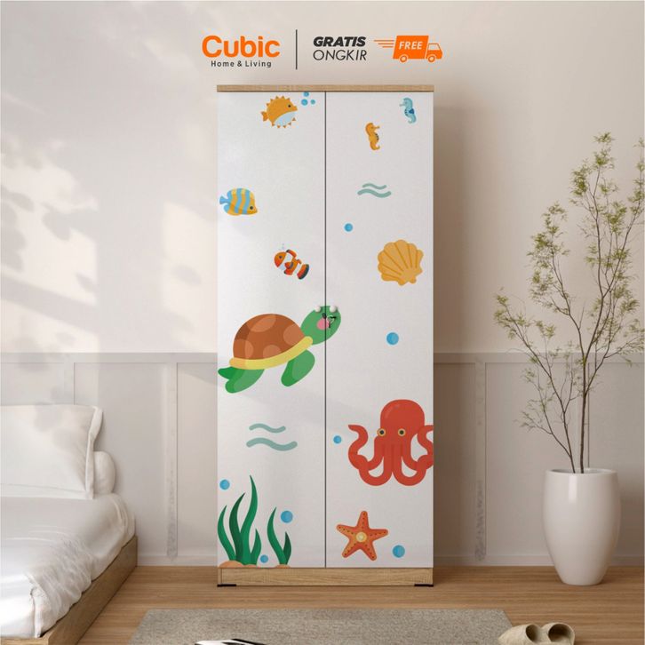 Lemari Pakaian Anak Cubic Bergambar 2 Pintu