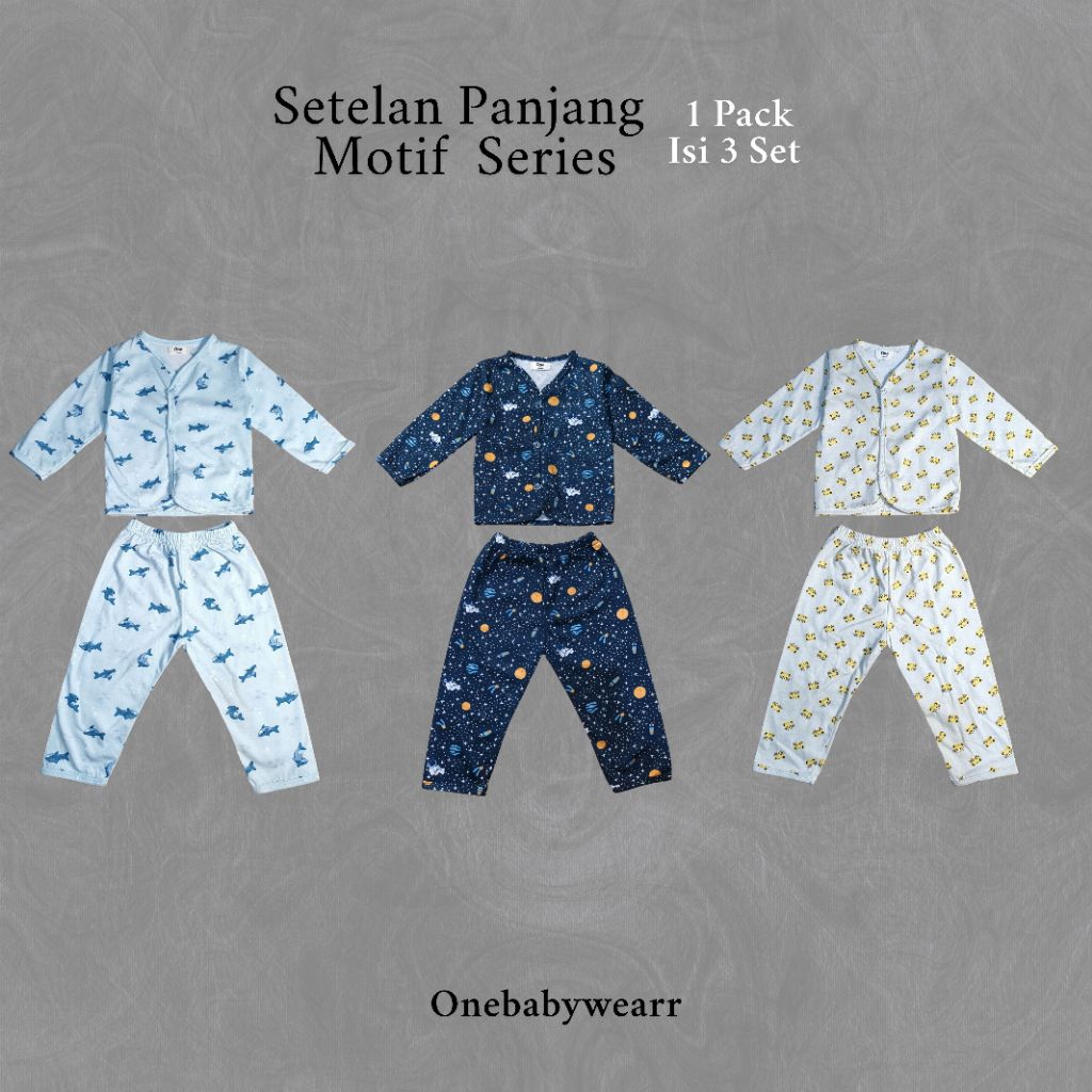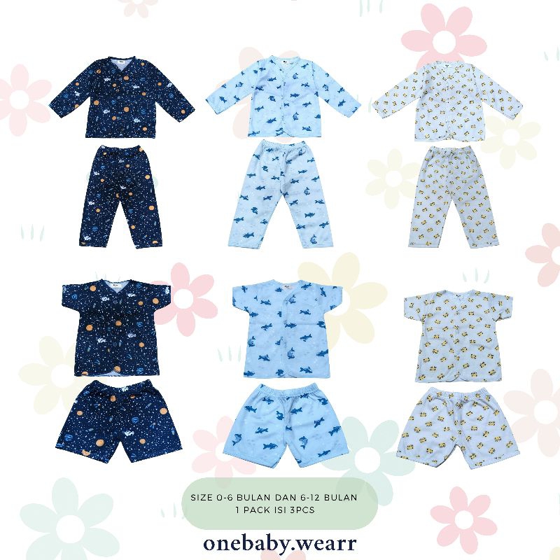 Paket Set 3 Warna Baju Bayi Perempuan Laki-laki Motif Lengan Pendek Panjang Usia 0-12 Bulan