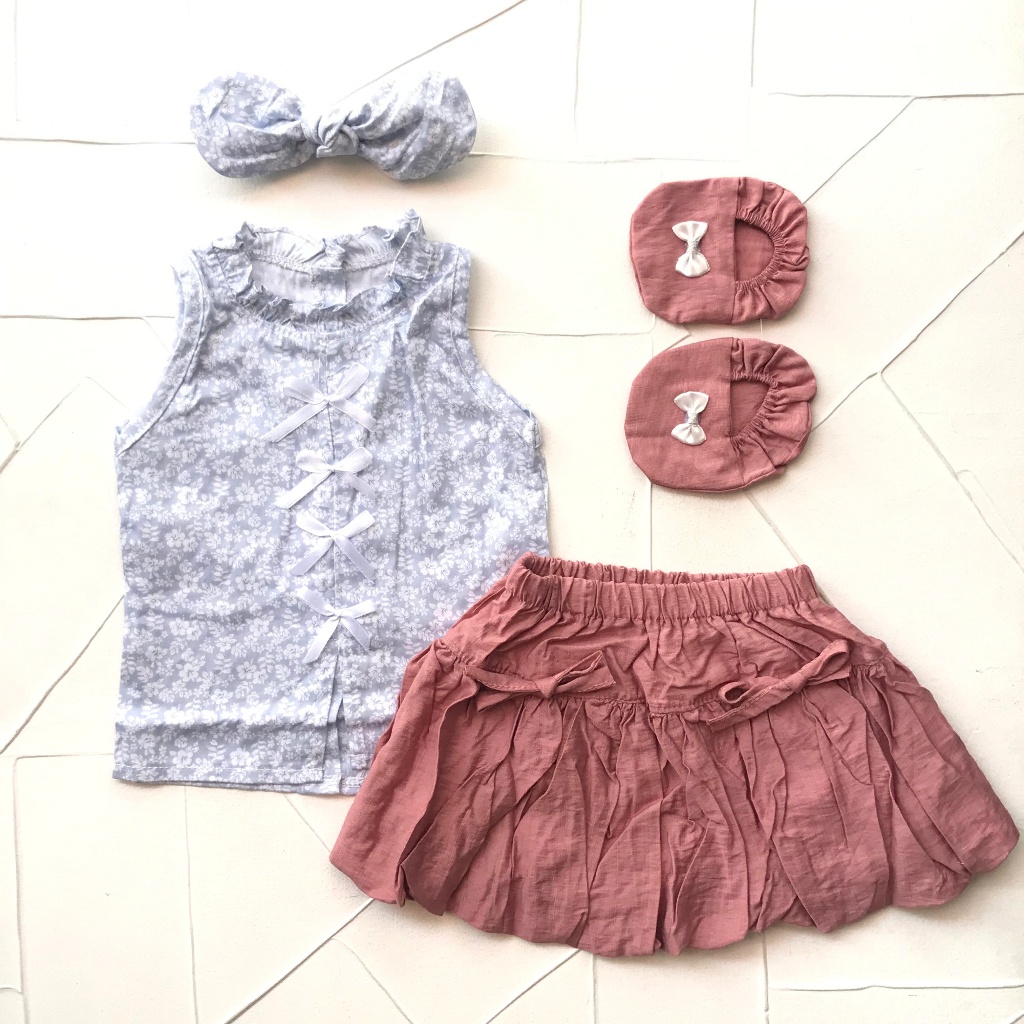 Baju bayi perempuan 0-6 bulan set rok katun bunga newborn
