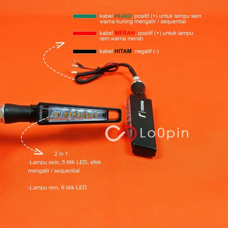 TERLARIS LAMPU SEIN SEQUENTIAL + REM 2IN1 LED MOTOR - EL RIZOMA VISION XL - UNIVERSAL