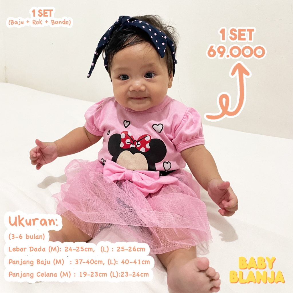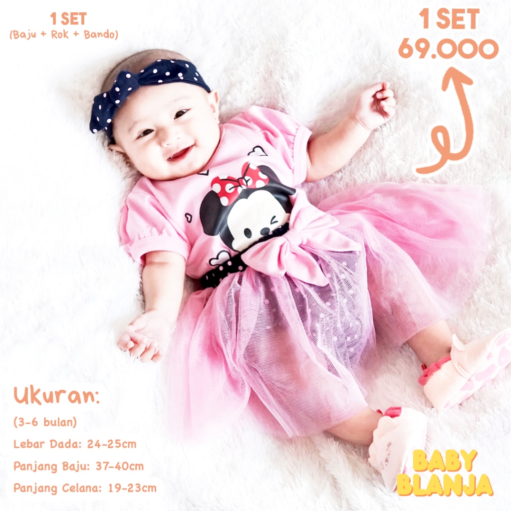 Baju Bayi Perempuan 0-6 Bulan Minnie Set Katun Jepang