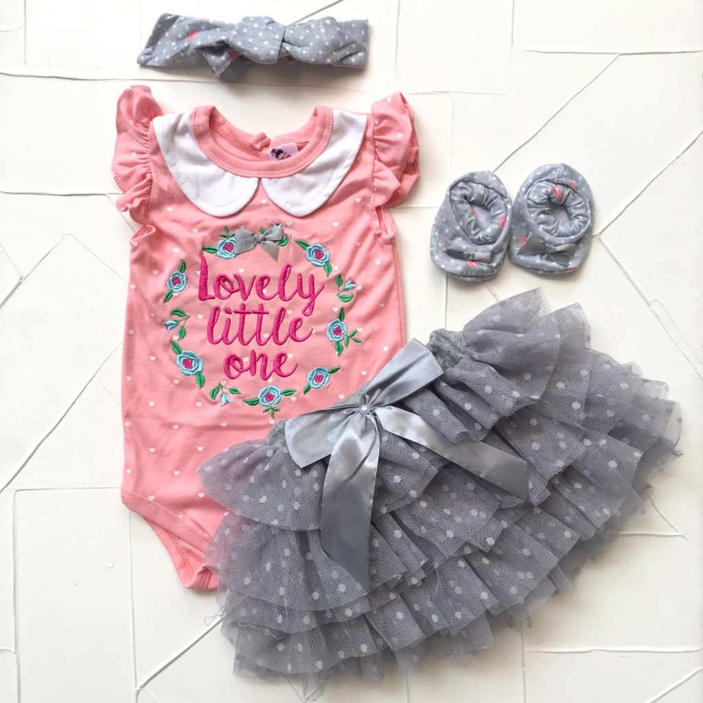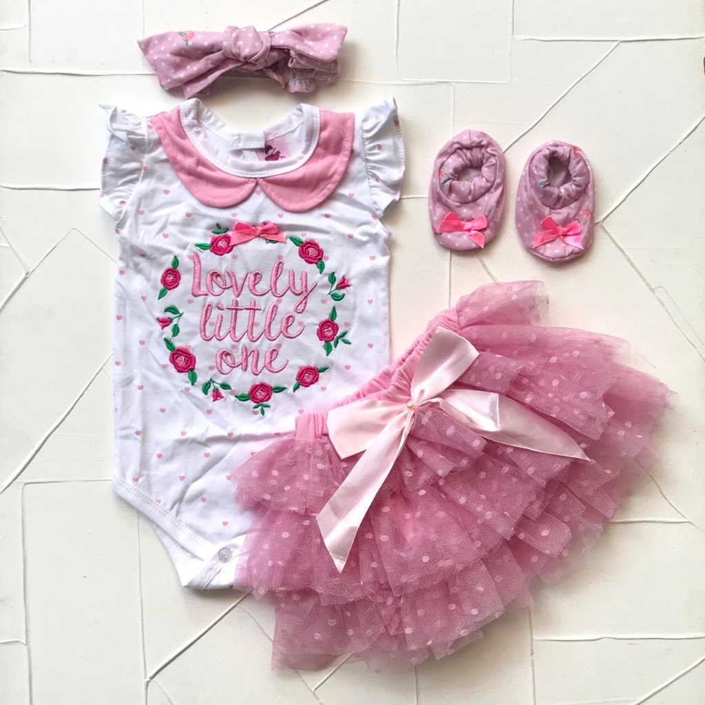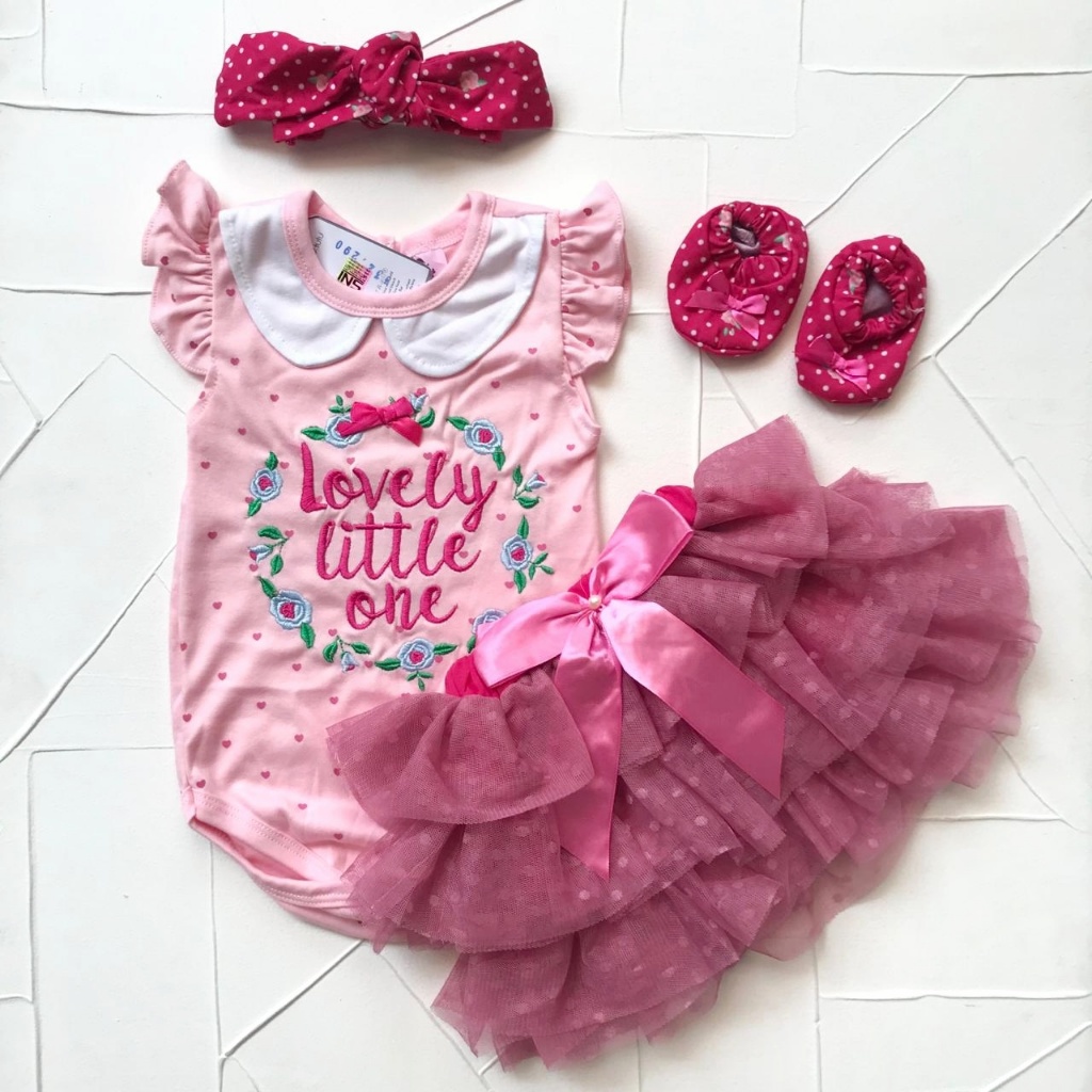 baju bayi anak perempuan set rok 0-8 bulan lovely flower bordir baby gir newborn sepatu bando