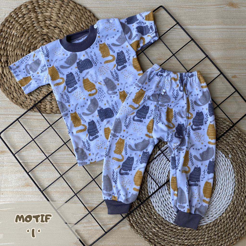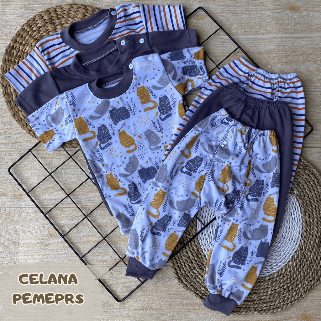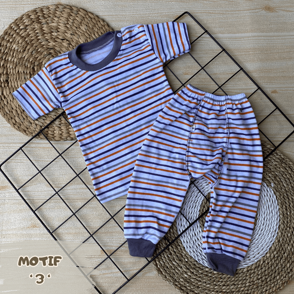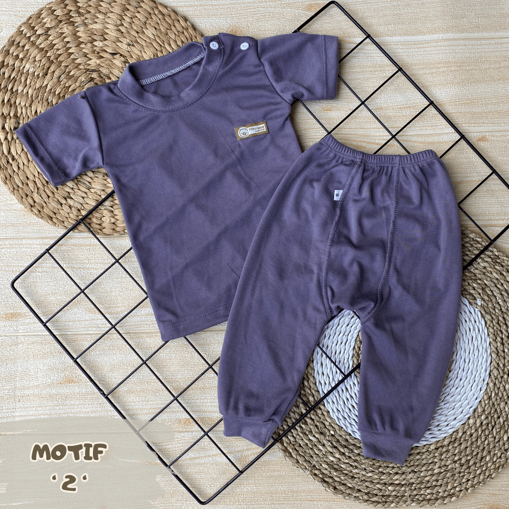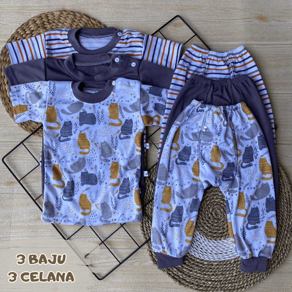 Y&M BABY - Isi 6 PCS Baju Bayi Lengan Pendek Celana Pempers Panjang Series Taro ( 3 Baju + 3 Celana ) Usia 0-18 Bulan