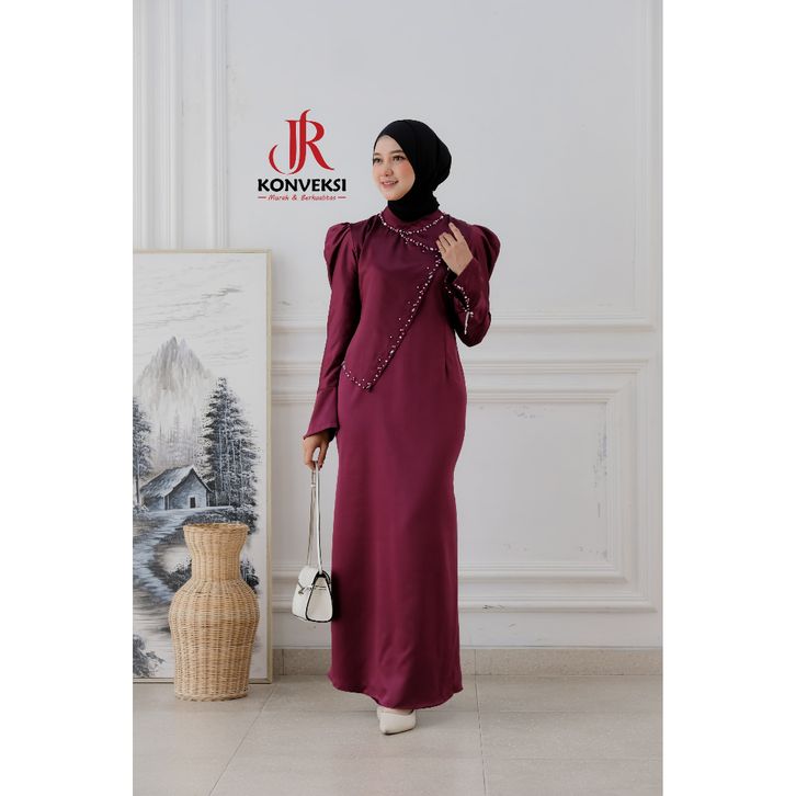 Amania Dress Kondangan Modern Wanita Gaun Satin Silk Payet Duyung Baju Bridesmaid Wisuda Lamaran Pesta Simple Terbaru