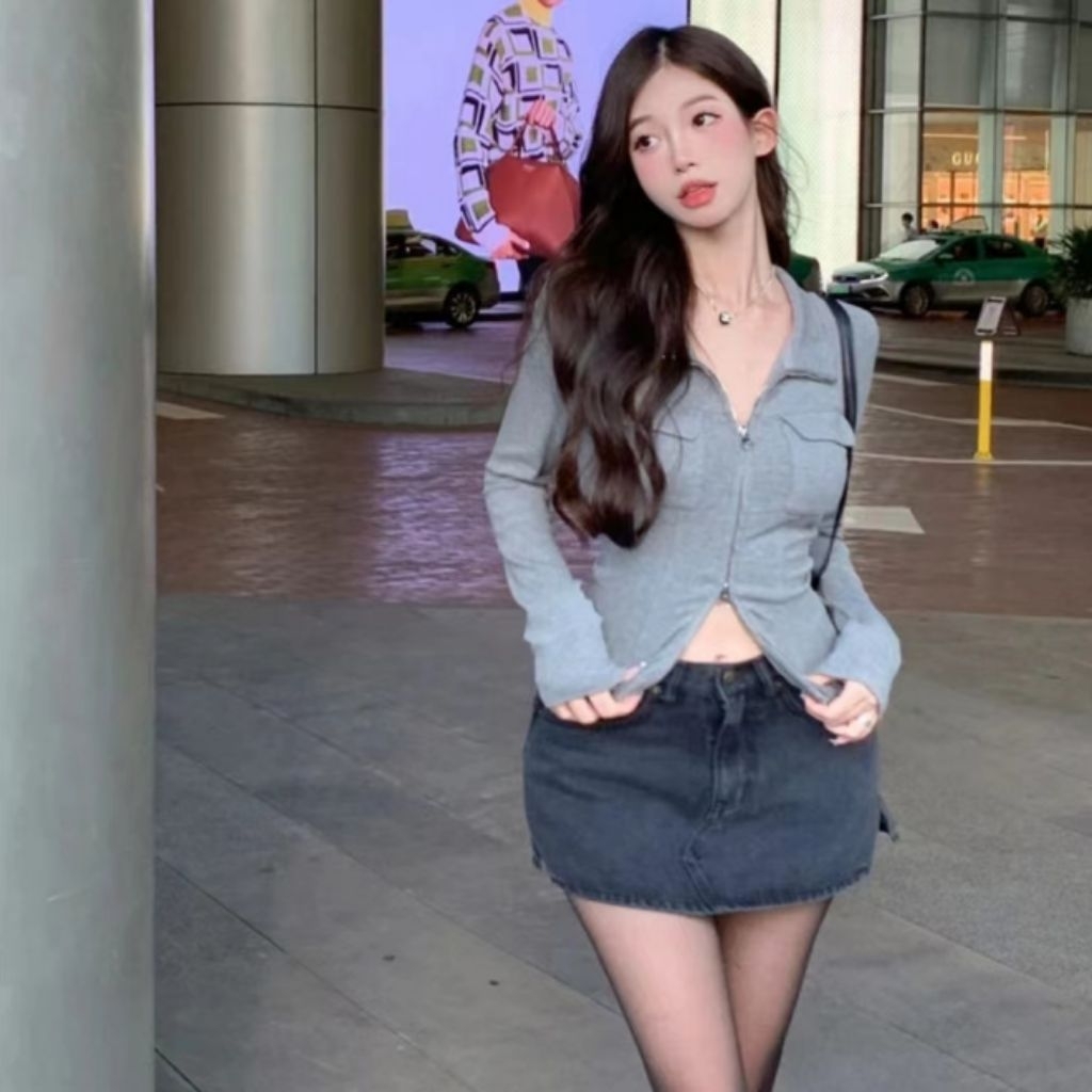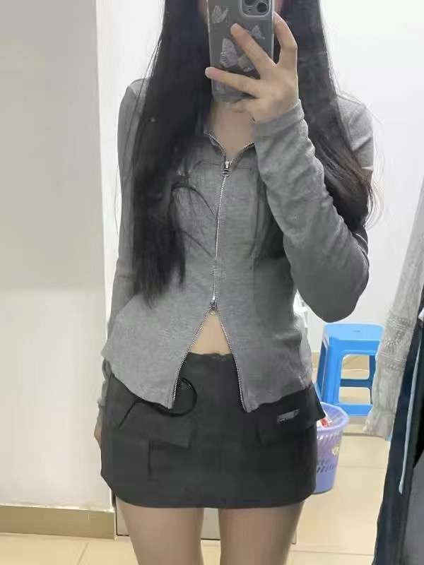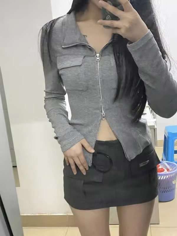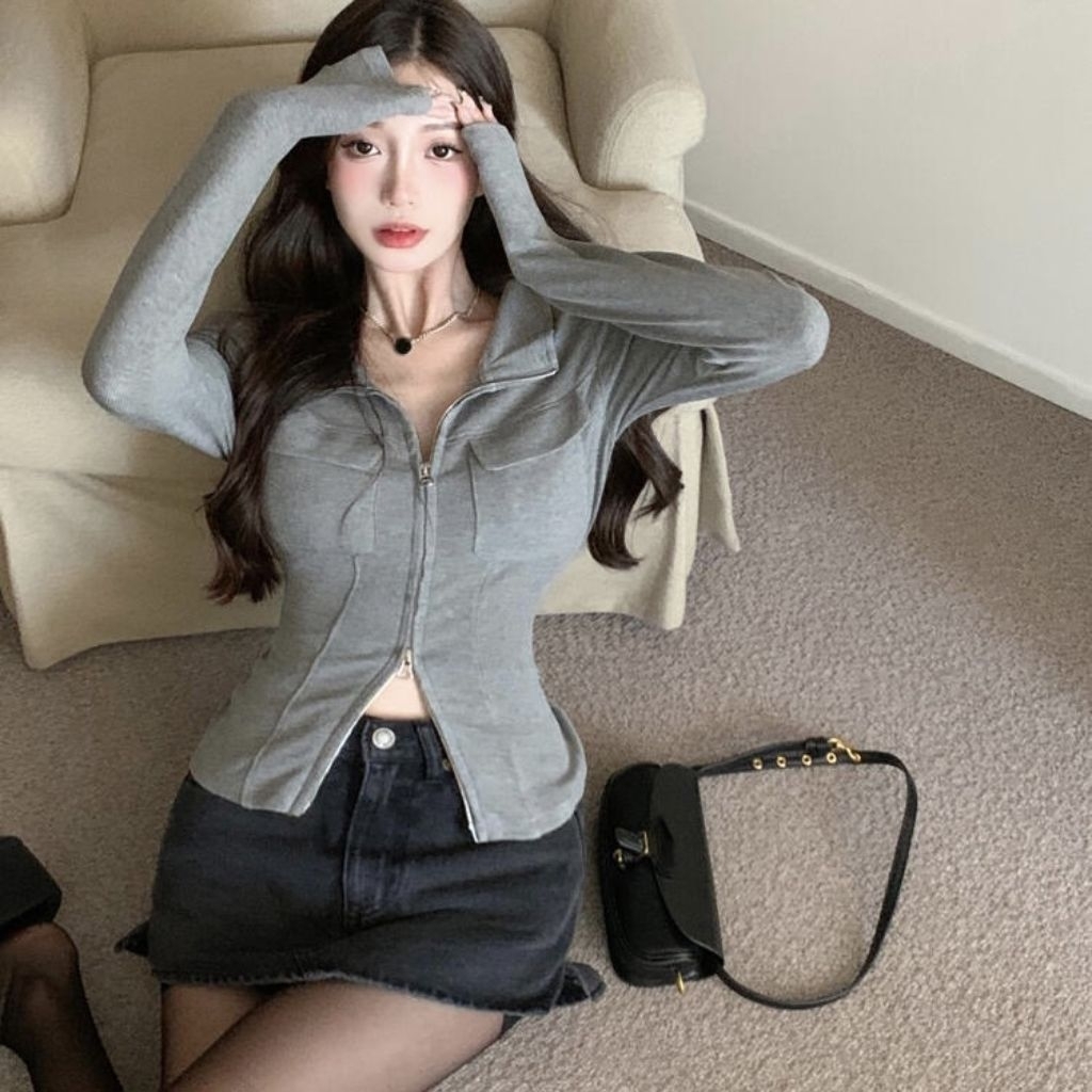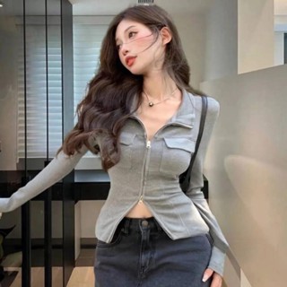 Atasan Lengan Panjang Ziper Pas Body Wanita Korea Stylish M696