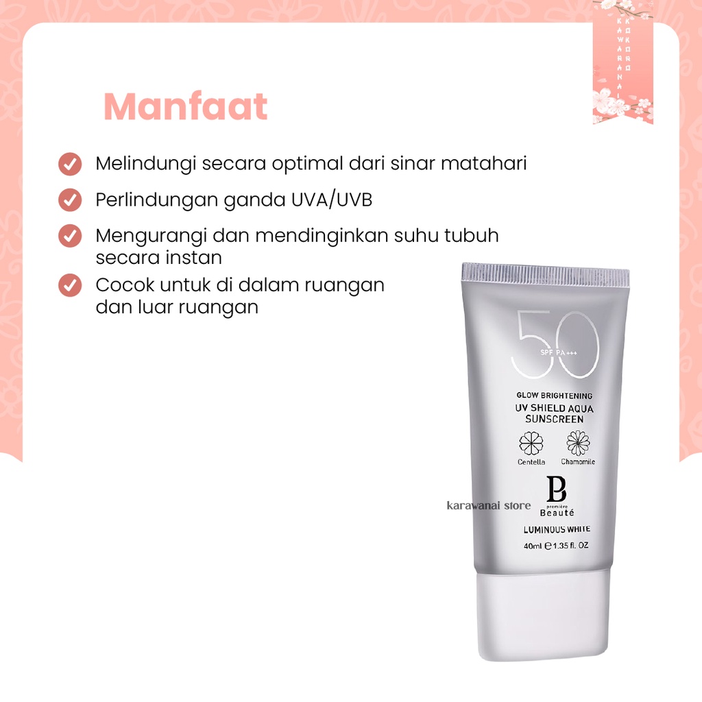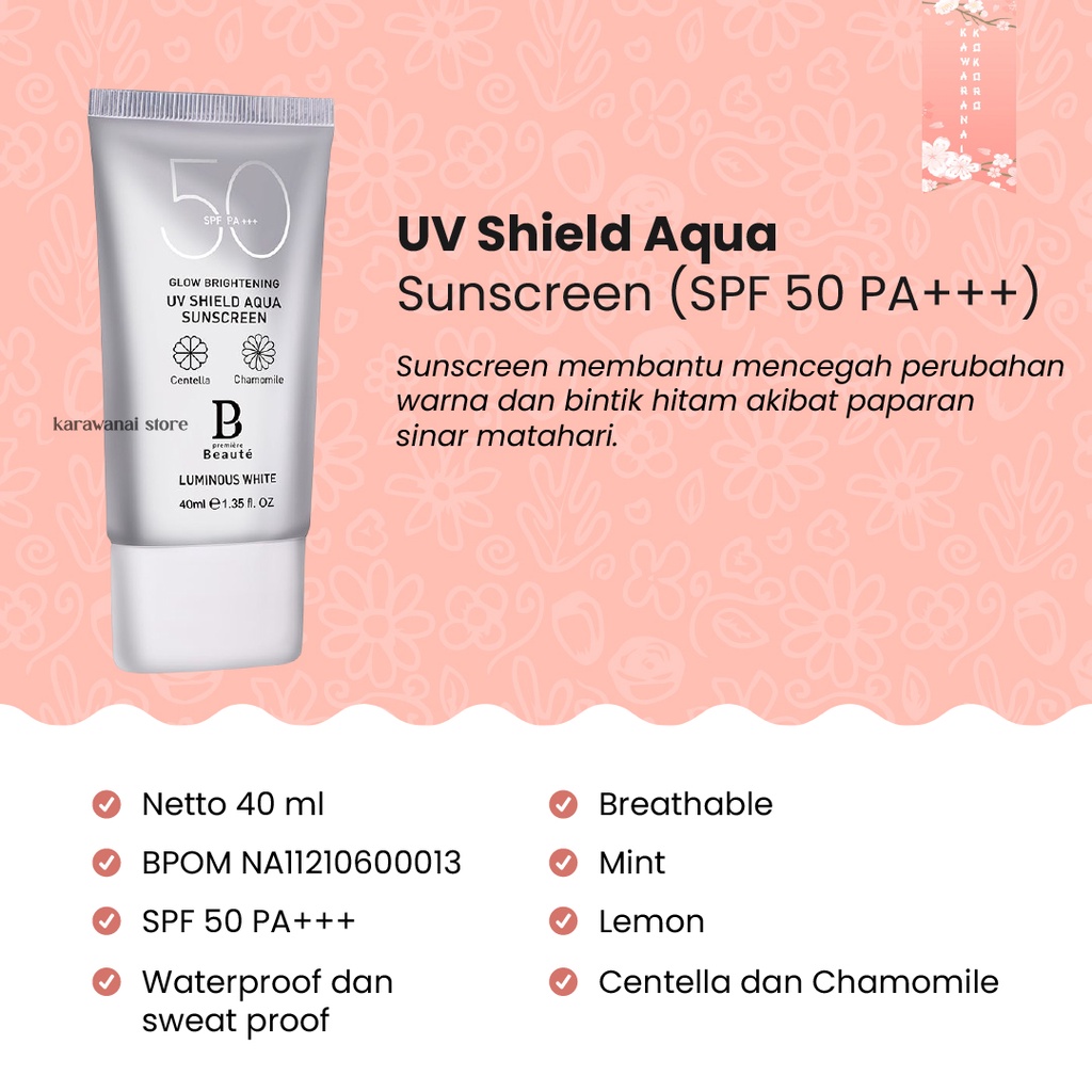Sunscreen (SPF 50 PA+++) 40ml Sun creen wajah UV Shield Sun protect sunblok READYSTOK [ORIGINAL + BPOM] Premiere Beaute
