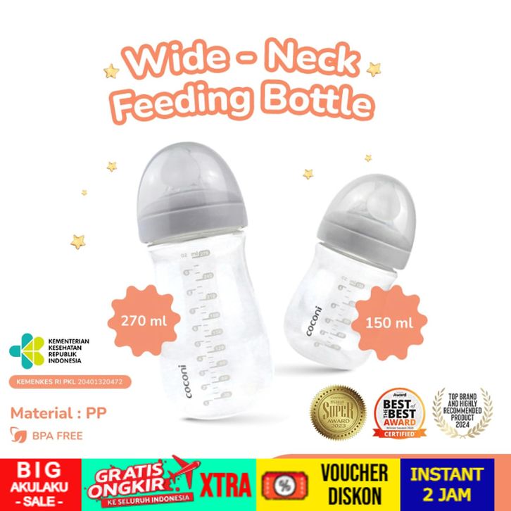 Coconi Wide Neck Baby Feeding Bottle 150/270 Ml Botol Susu Asi Nipple Peristaltic Dot Bayi Newborn Wideneck Anti-Colic