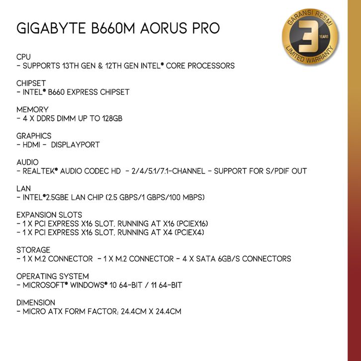 GIGABYTE B660M AORUS PRO | Intel B660 LGA 1700 DDR5 Micro ATX
