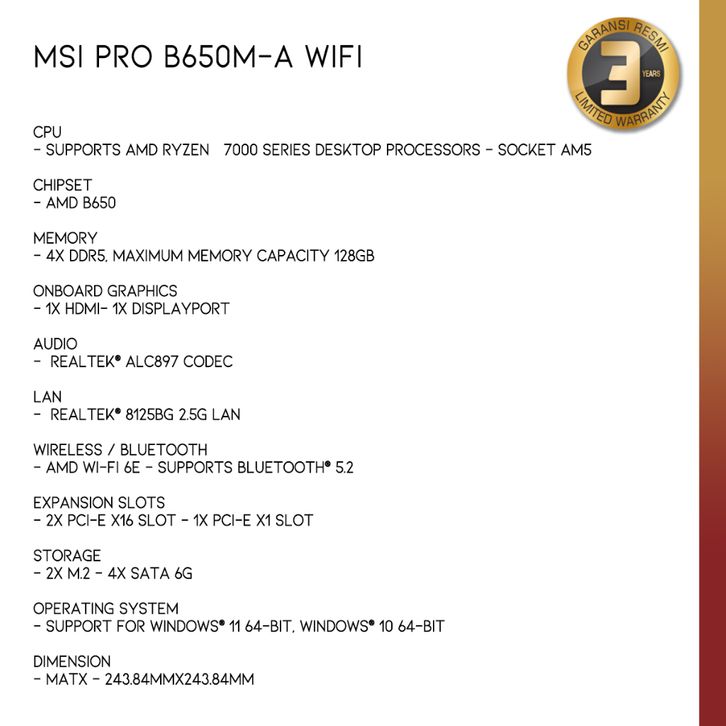 MSI PRO B650M-A WIFI | Motherboard AMD B650 Ryzen AM5
