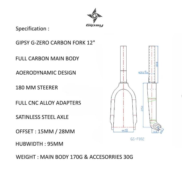 Gipsy G-ZERO 12 (28.6mm) FULL CARBON FORK for Kid Balance Push Bike