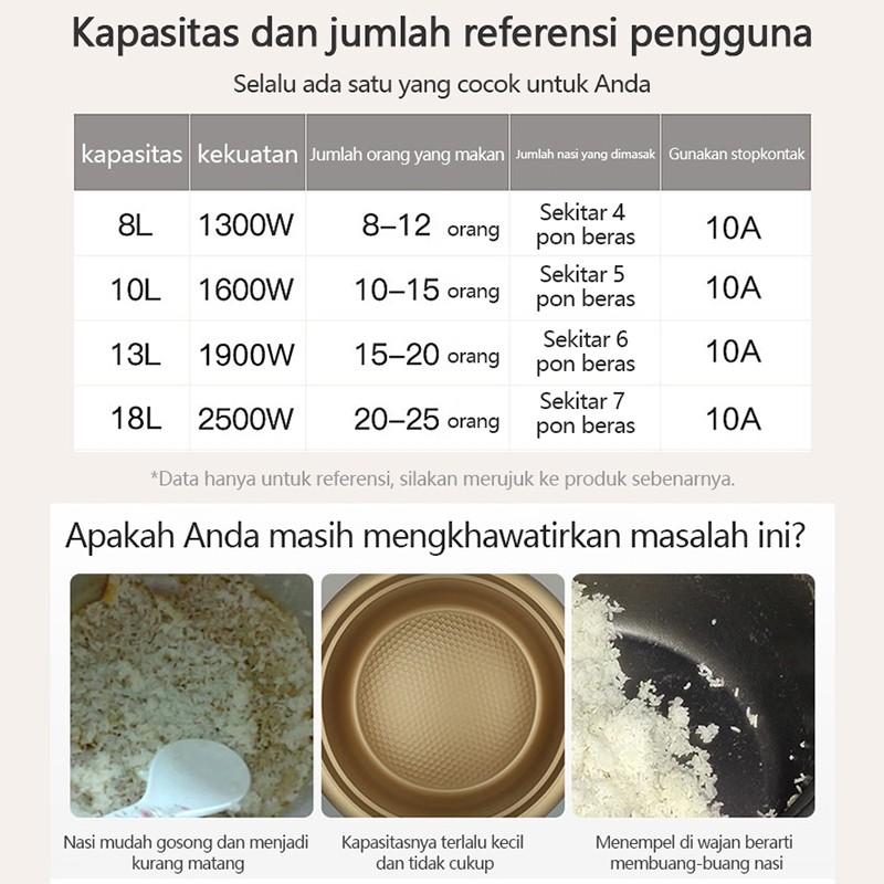 LENODI Penanak Nasi Komersial Berkapasitas Besar Anti Lengket, Penanak Nasi Model Ekstra Besar, Restoran Multi-orang, Kantin, Ekstra Besar, 18L