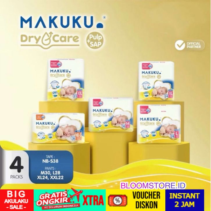 PAKET 4 BAL - MAKUKU Air Diaper Diapers Dry Care Drycare SAP Popok Celana Perekat Pant Pants Tape Bayi Baby Baru Lahir