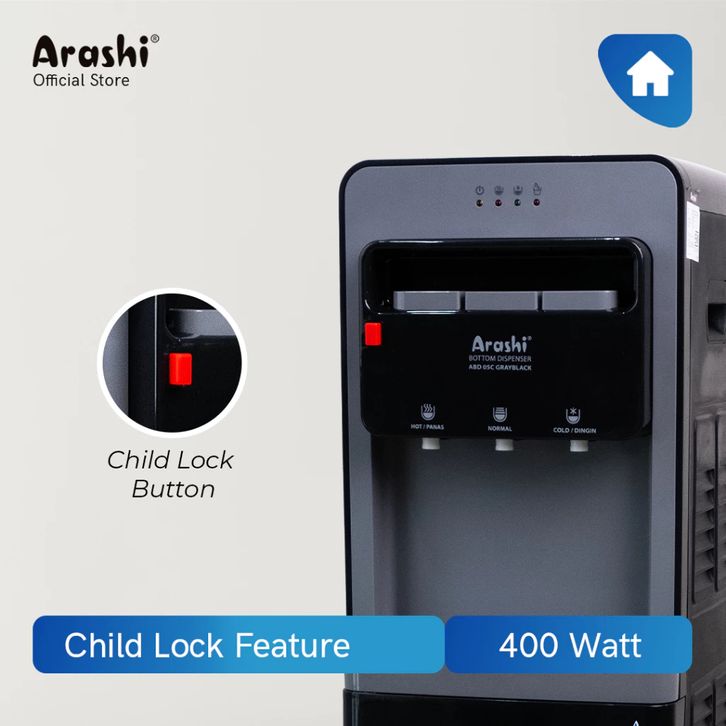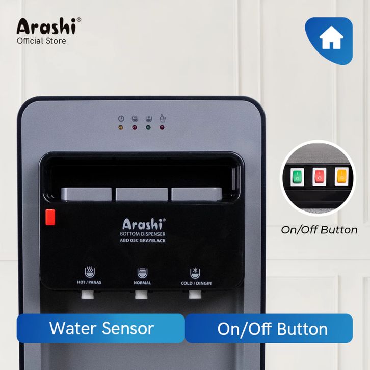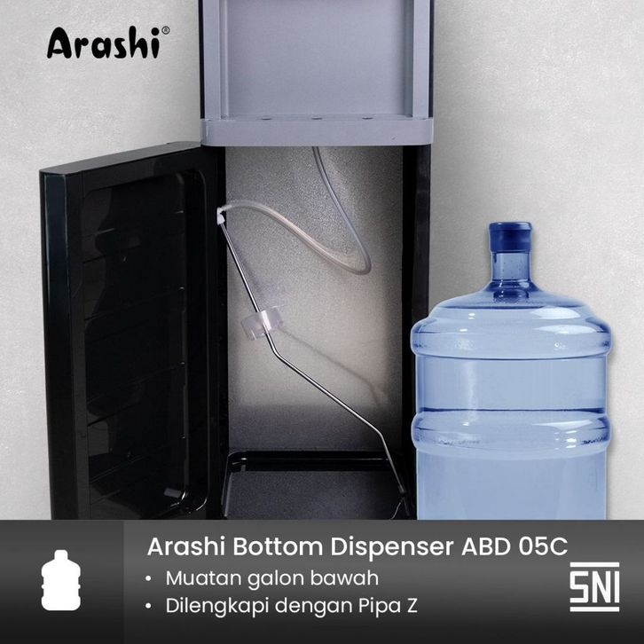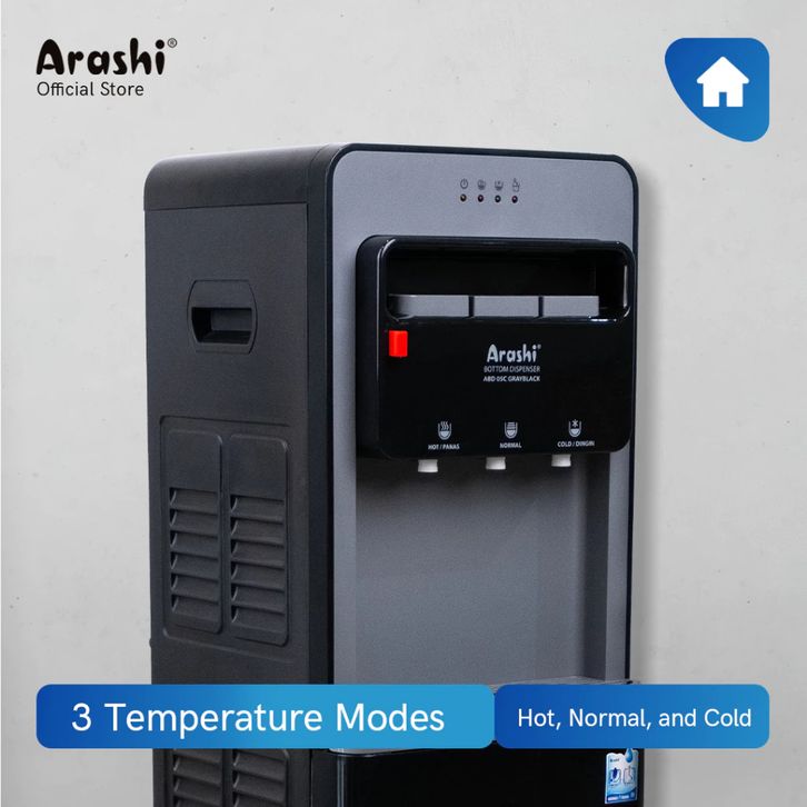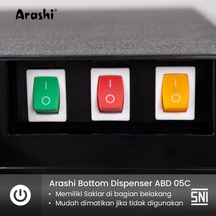 Dispenser Arashi ABD05C Galon Bawah 3 IN 1 Low Watt 3 Kran Panas Dingin Normal Murah Terbaru Best Seller