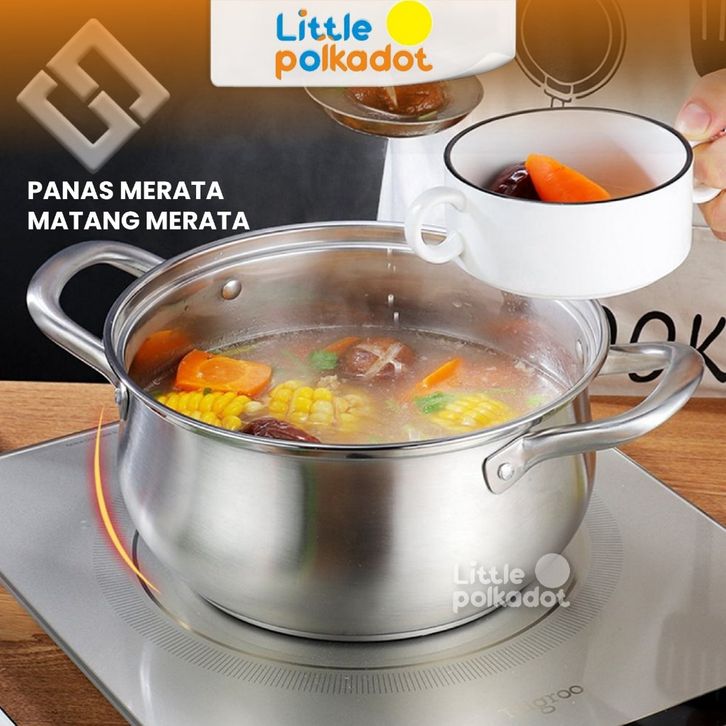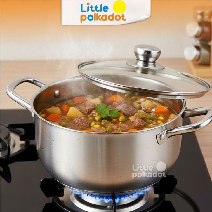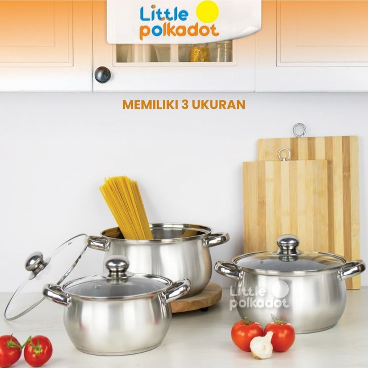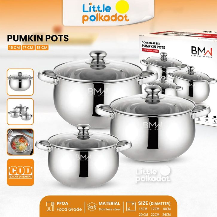 BMW Original Stainless Panci Soup Labu isi 3 Pcs Tutup Kaca Pumpkin Panci Rebus Set 3 Pcs Panci Sayur Tutup Kaca Panci