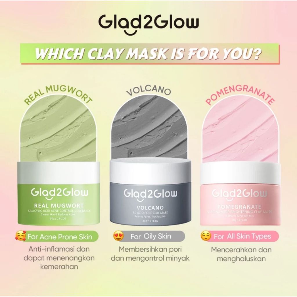 skincare glad 2 glow Mask Series | Glad2Glow Pomegrante Volcano Mugwort Clay Mask Masker Wajah Face Cleansing Stick