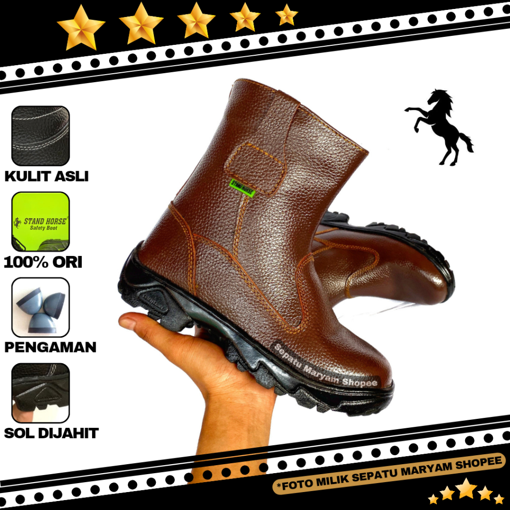 GERATIS ONGKIR Sepatu Safety Pria Boots Proyek Kulit Sapi Asli Kerja Lapangan Septi Ujung Besi Safety Shoes