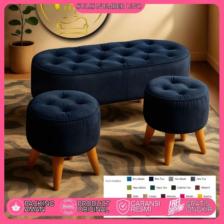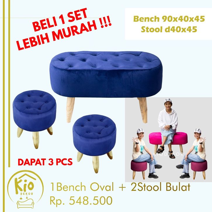 Sofa Tamu Bundling Bech Oval 90x40 1pcs + Stool Bulat Diameter 40 2pcs - Set Sofa Minimalis - 1 Set Sofa Minimalis