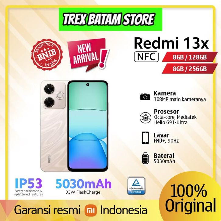 Hp Handphone XIAOMI REDMI 13 X 8/128 8/256 GB NEW 2025 108MP FHD+ 5030 mAh GARANSI RESMI BATAM