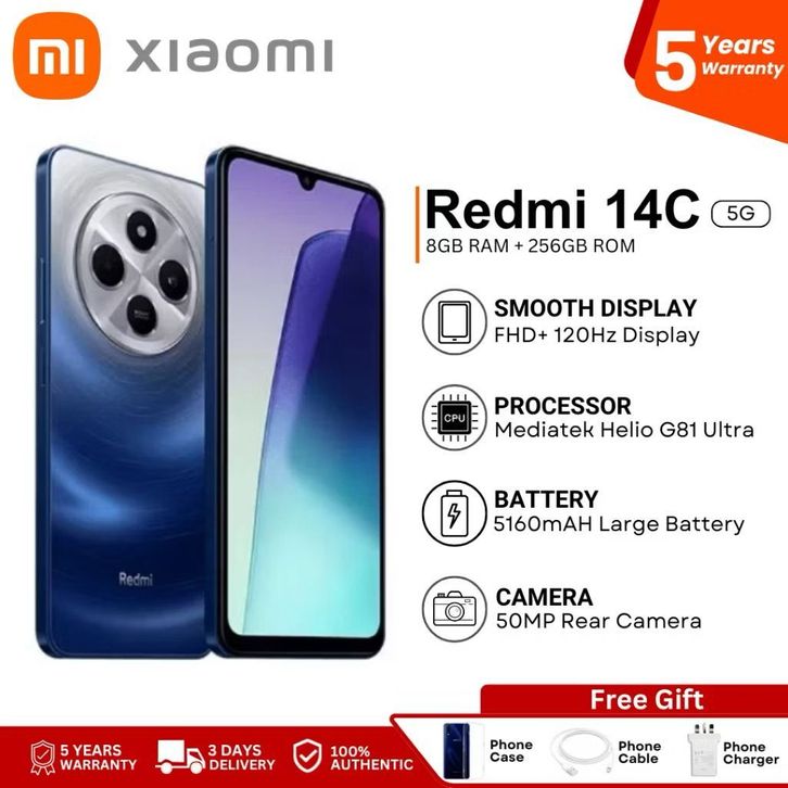 Hp Handphone Xiaomi Redmi 14C 5G 8GB/256GB | Layar 6.88" | Refresh rate 120 Hz | 50 MP dual kamera AI | Baterai
