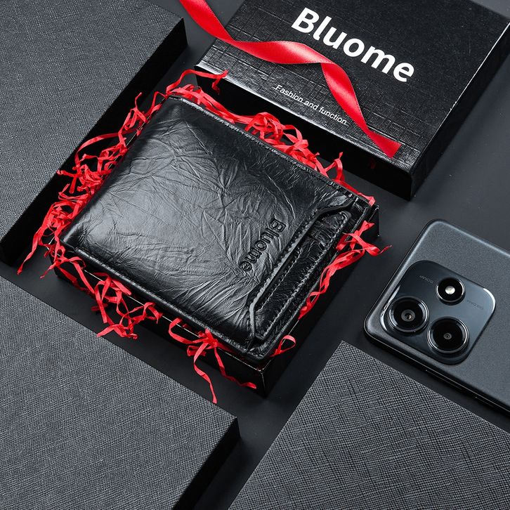 NEW Arrival Bluome Dompet Kulit Pria Keren Slot Kartu Dompet Lipat Pendek Cowok Resleting Wallet Card Holder esefk