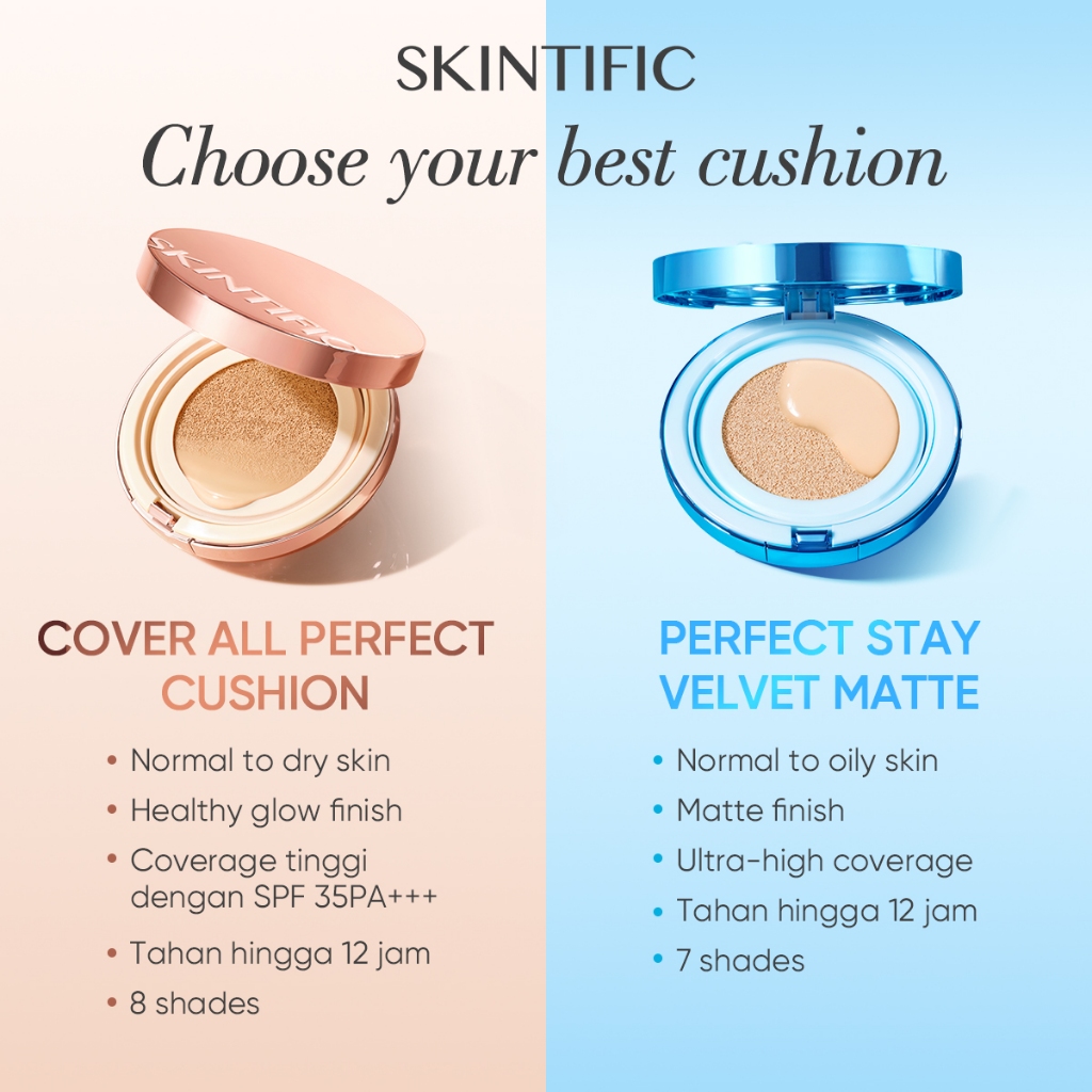 SKINTIFIC OFFICIAL STORE Cover All Perfect Cushion 11 ml Perfect Stay Velvet Matte Cushion High Coverage Oil-Control
