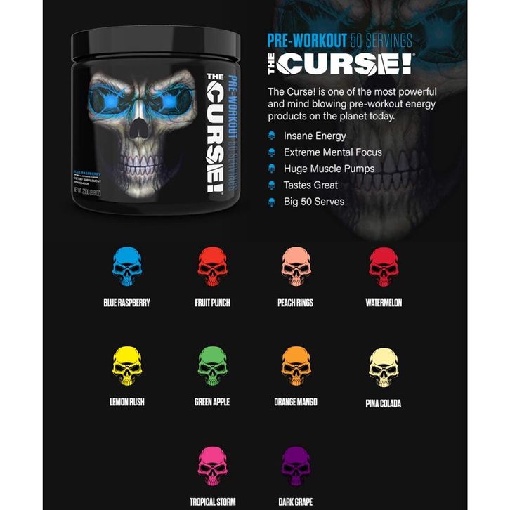 SUPLEMEN GYM THE CURSE JNX SPORTS PRE-WORKOUT 50 SERVINGS PWO 155 MG CAFFEINE SUPLEMEN PENAMBAH MASSA OTOT THE CURSE JNX
