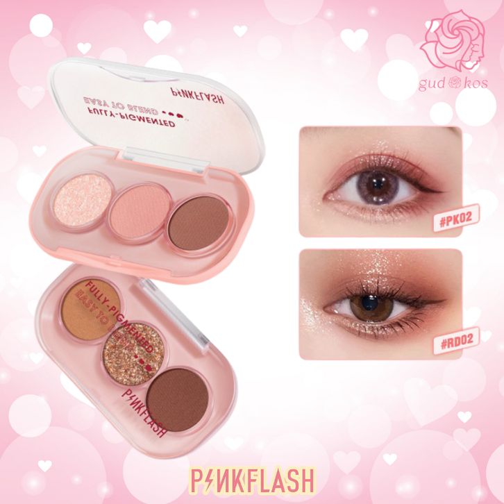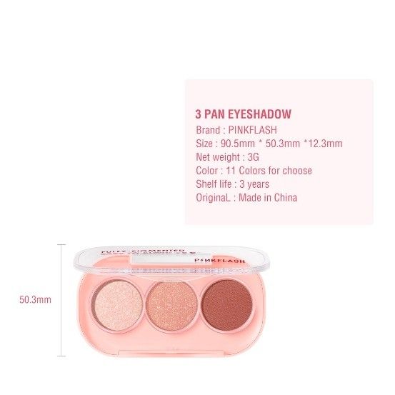 PinkFlash Official Store Eyeshadow Lipstik Eyeliner PINKFLASH Eyeshadow 3 Warna – Palet Mini PF-E23