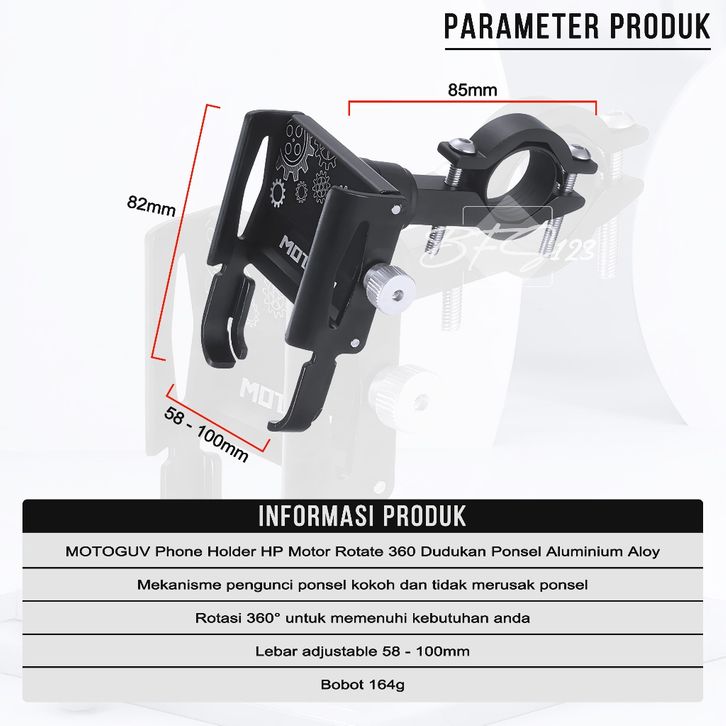 holder hp di motor waterproof gub MOTOGUV Phone Holder HP Motor Rotate 360 Dudukan Ponsel Stang Spion Motor Aluminium A