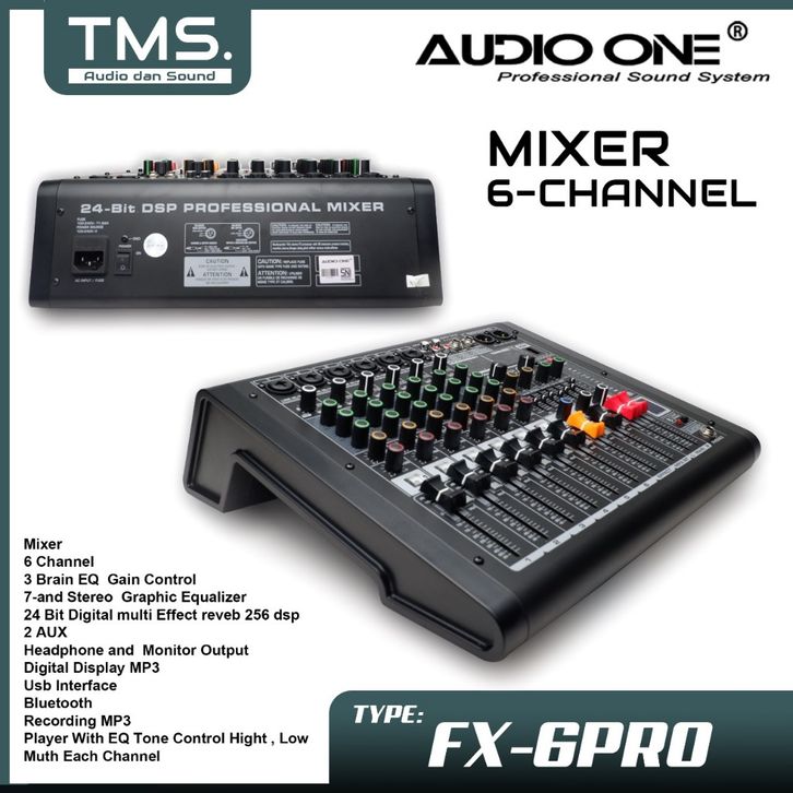 Mixer Audio AUDIOONE FX 6PRO Audio Mixer 6Ch Bluetooth /USB/PC/MP3