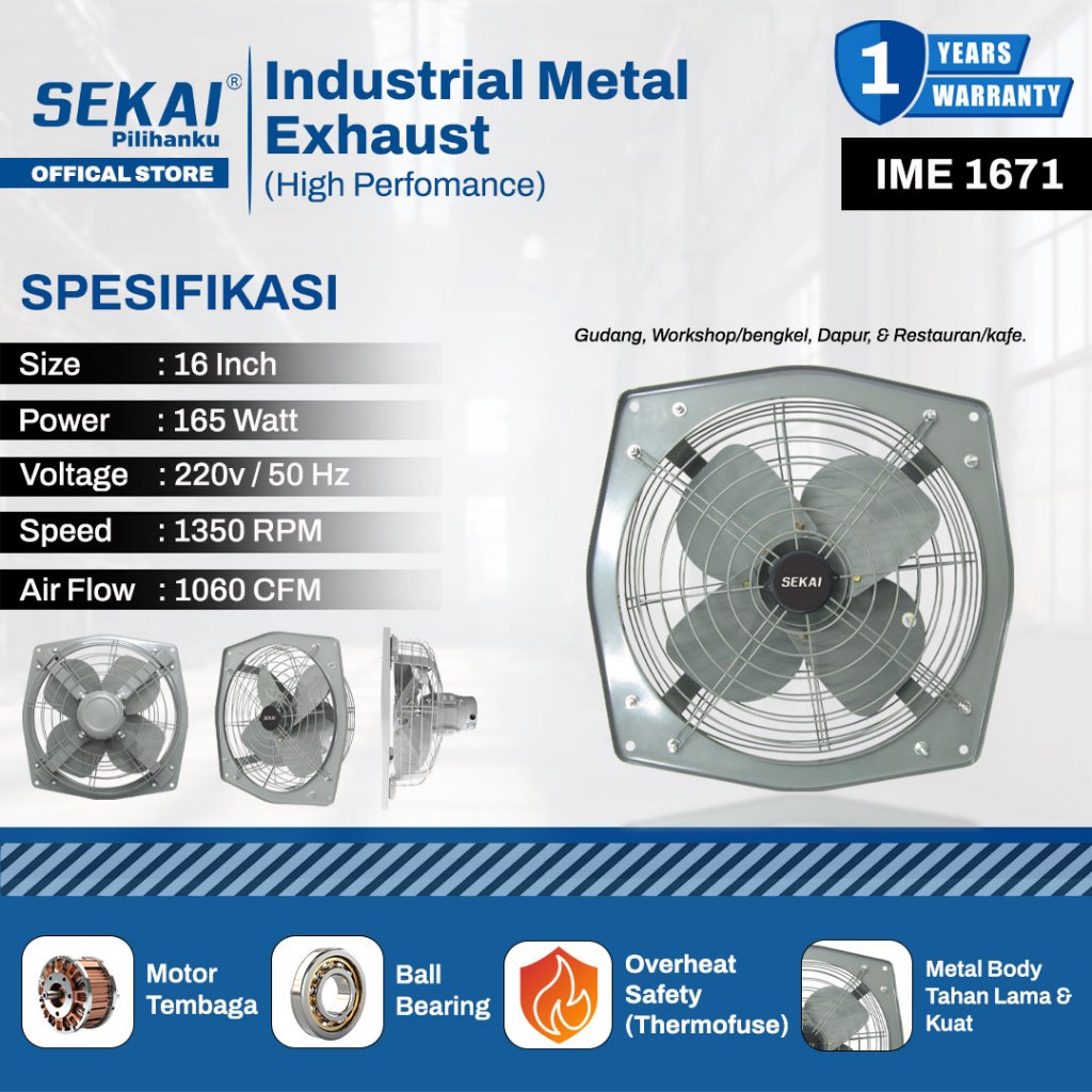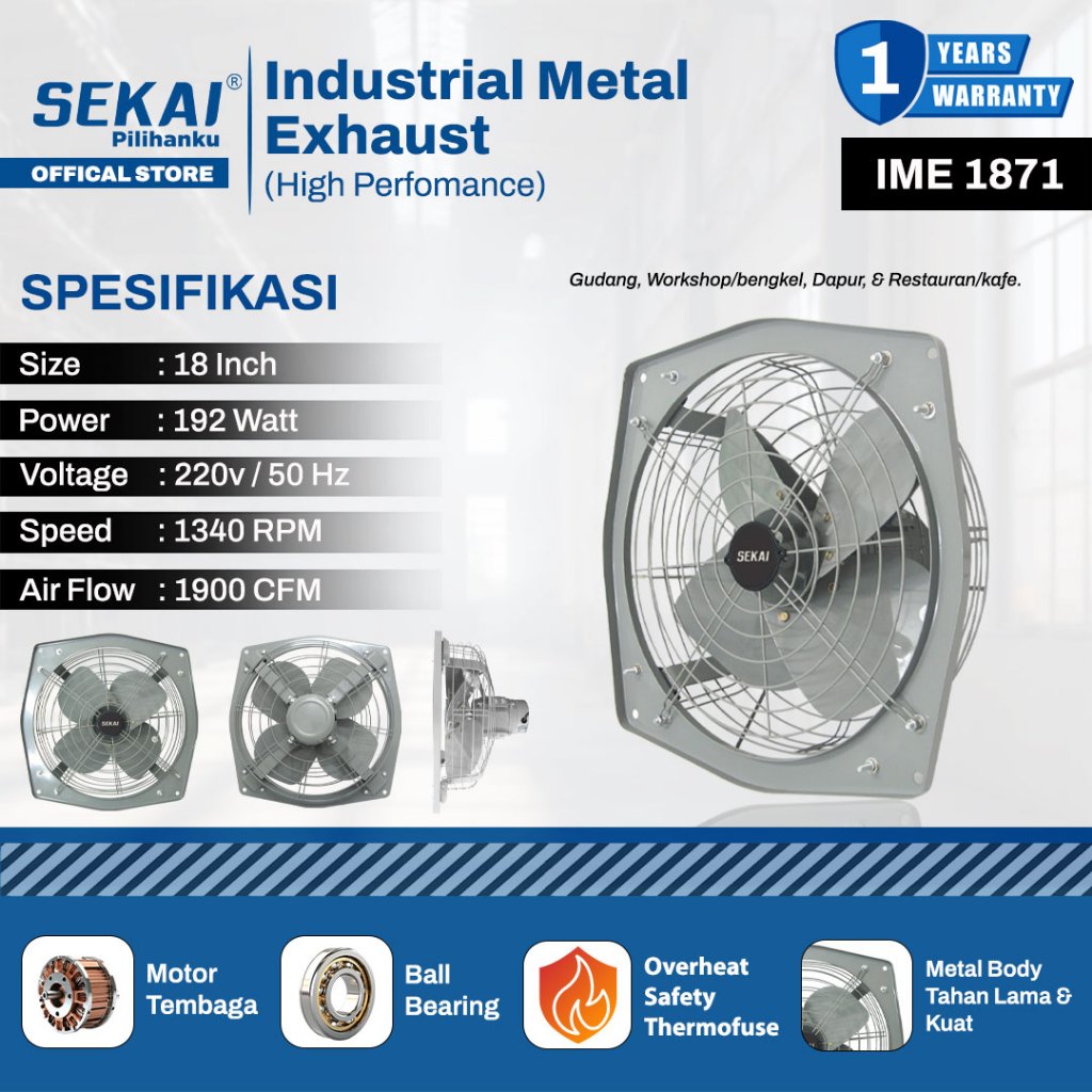 Kipas Angin SEKAI Exhaust Fan Industrial Hexos Heavy Duty 16 18 24 Inch Murah Terlaris