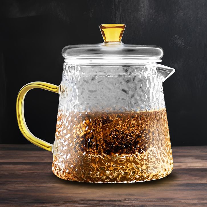 Teko Teh Saringan Kaca Tahan Panas Infuser Teapot Texture Hammered 450ml