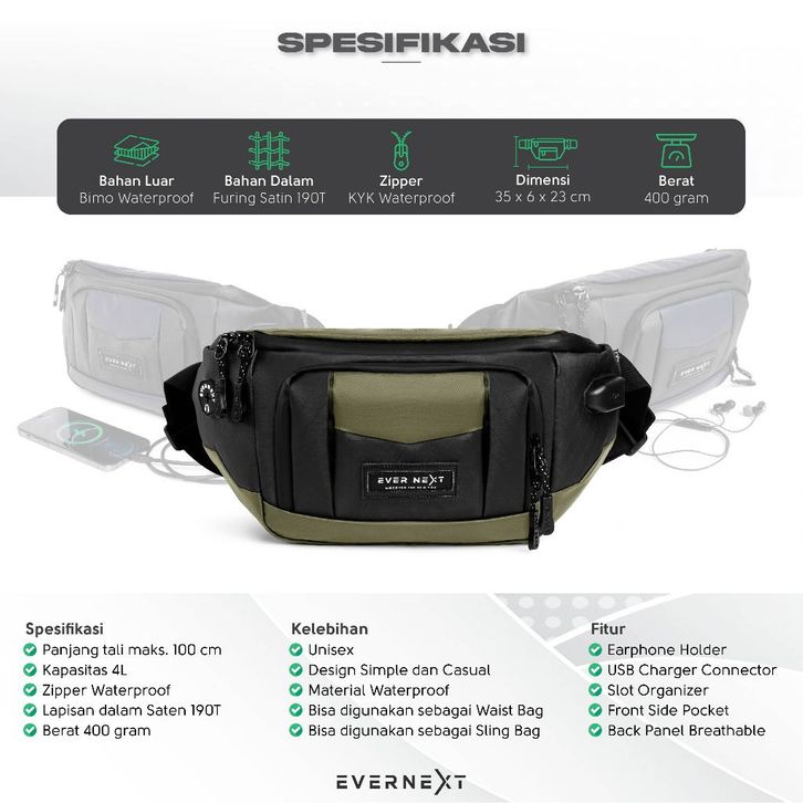 Tas Selempang Pria Outdoor Evernext Waist Bag Curve Waterproof - Cocok untuk Travelling Original Official Store